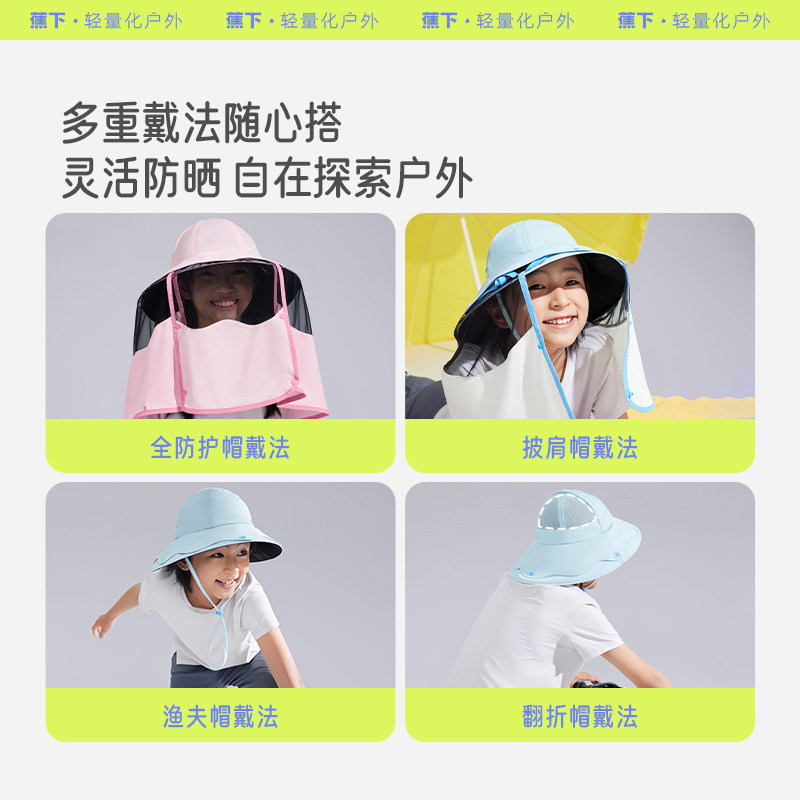 蕉下儿童全防护防晒帽BM58024夏季防虫蚊户外遮阳帽男女童防晒帽