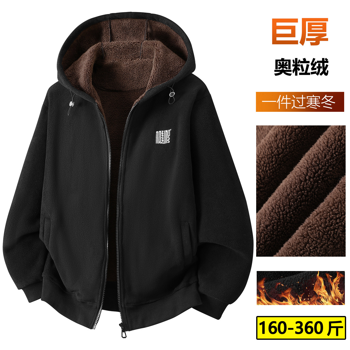 特大码重磅奥粒绒加厚外套男新款秋冬季保暖胖子加绒连帽开衫卫衣