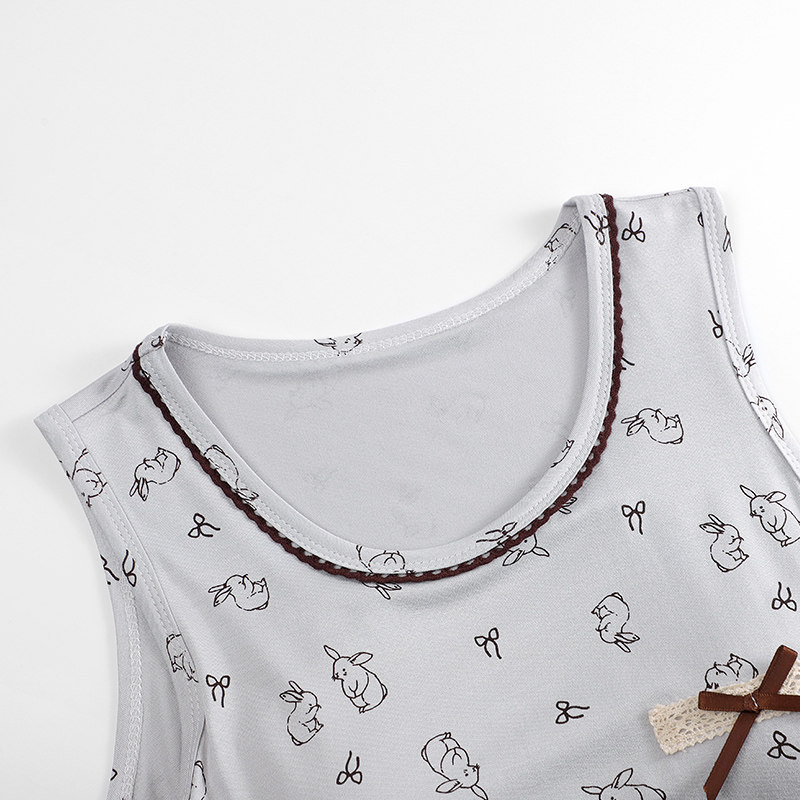 末里末【带胸垫】2026夏季无袖背心圆领睡裙可爱印花连衣裙家居服