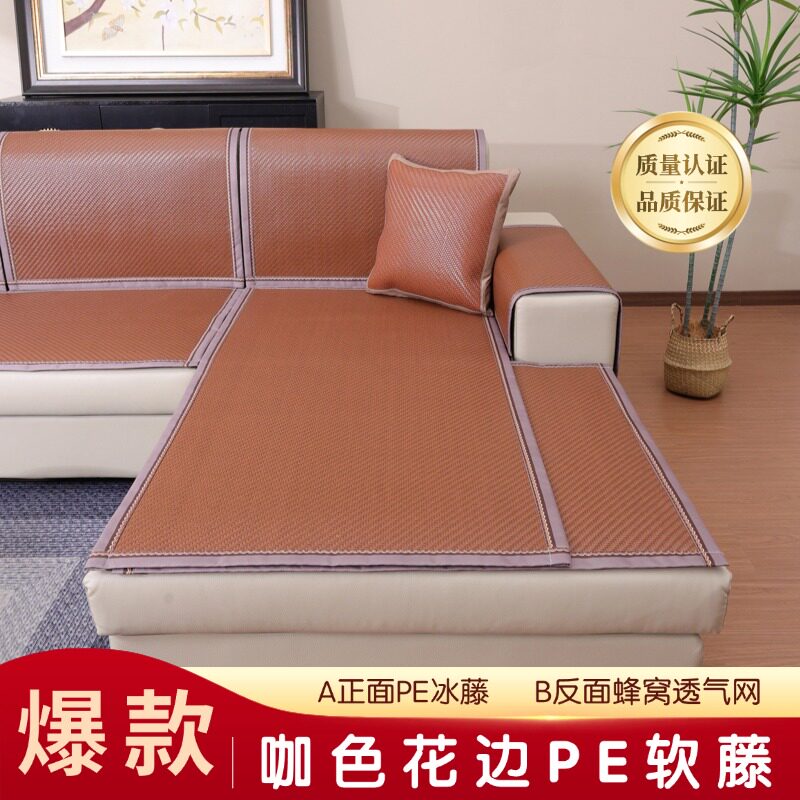 新款PE藤席沙发垫夏季凉席坐垫子冰丝飘窗凉坐垫藤沙发罩套防滑