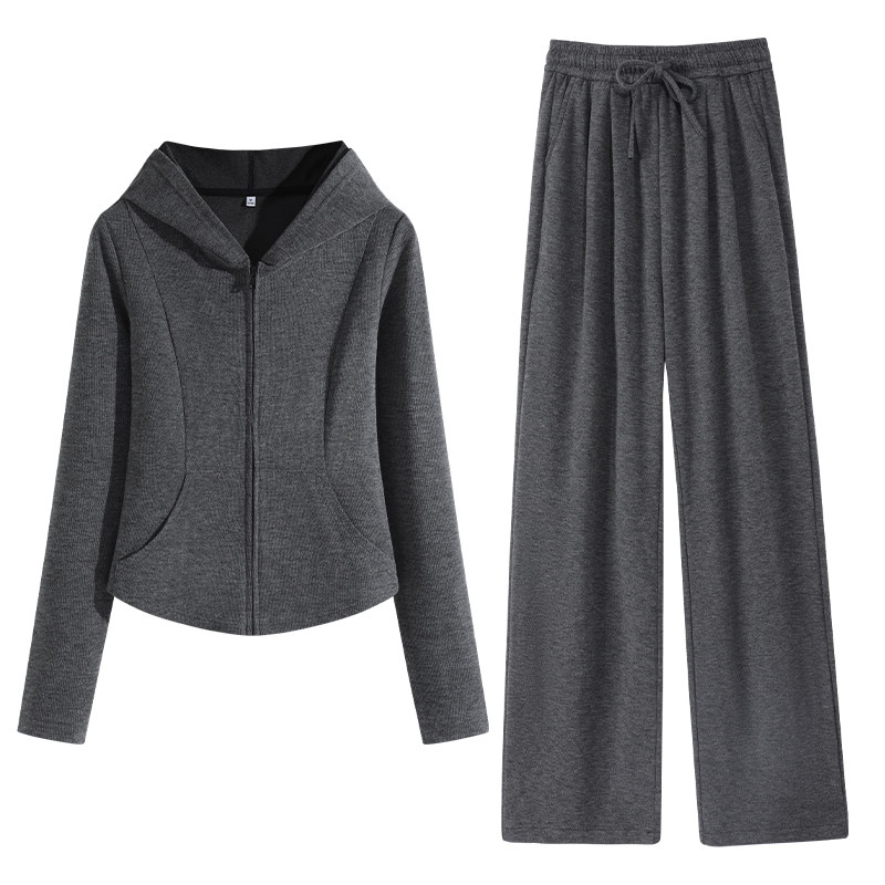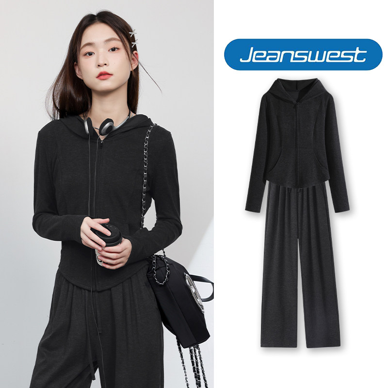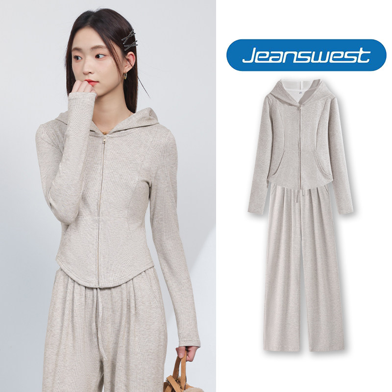 JVV SISTER气质休闲套装女2025冬季新款加绒连帽卫衣休闲裤两件套