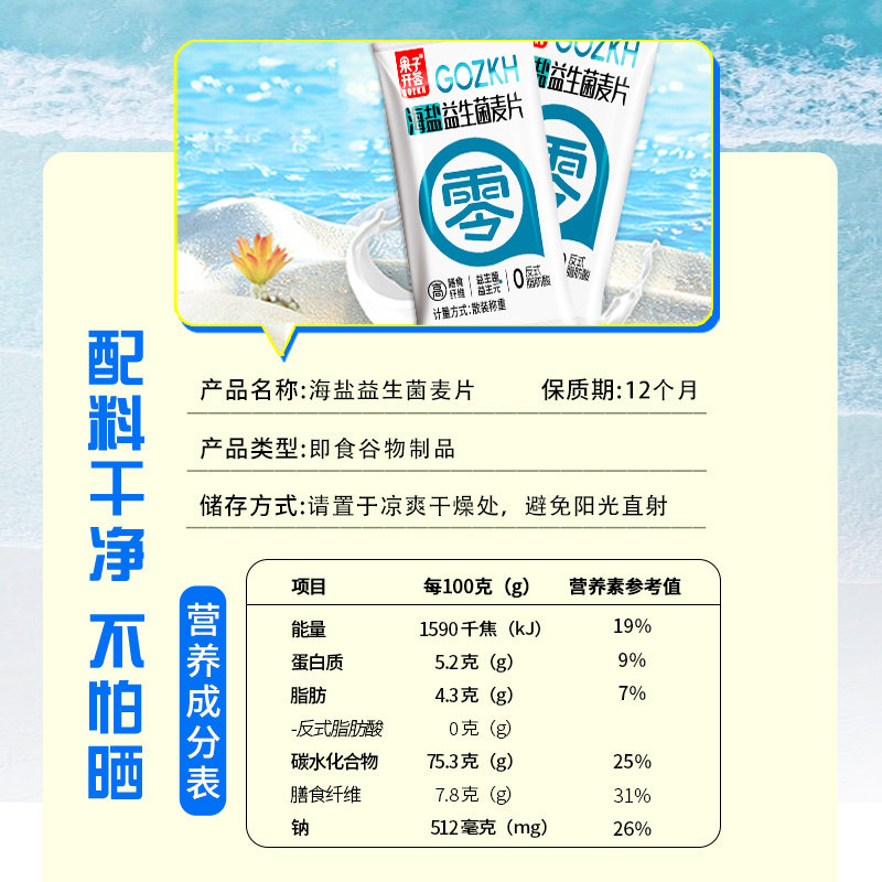 果子开荟海盐咸味燕麦片营养早餐代餐冲饮即食益生菌谷物饮品独立