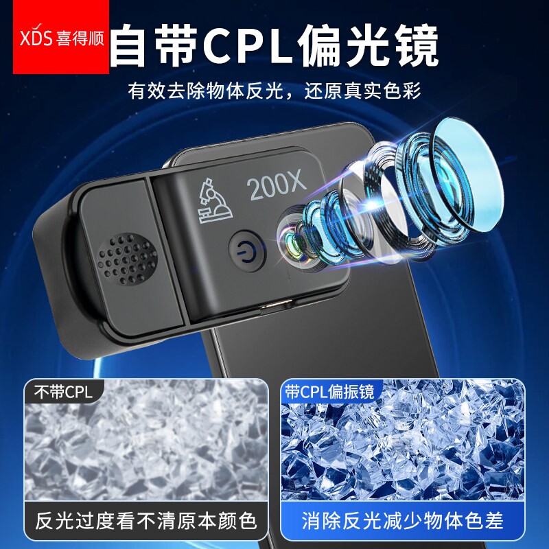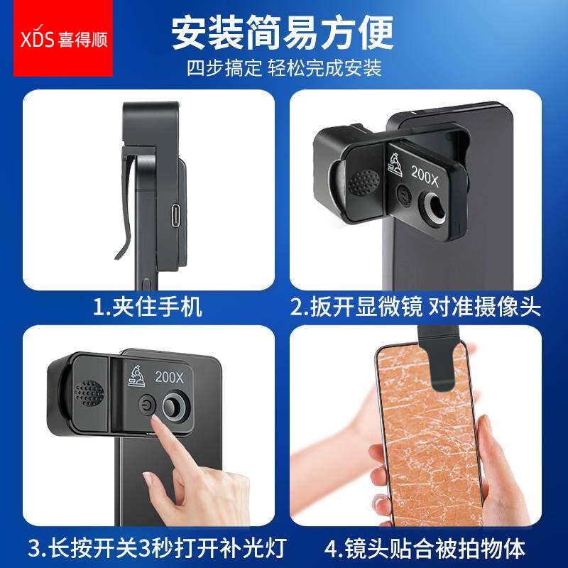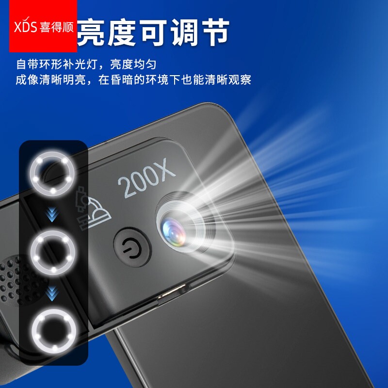 手机放大镜200倍高清带灯显微镜玉石鸽眼文玩珠宝瓷器古董鉴定专用放大器微距拍摄外接镜头拍照儿童科学实验