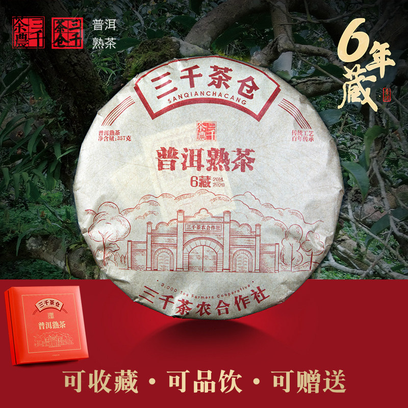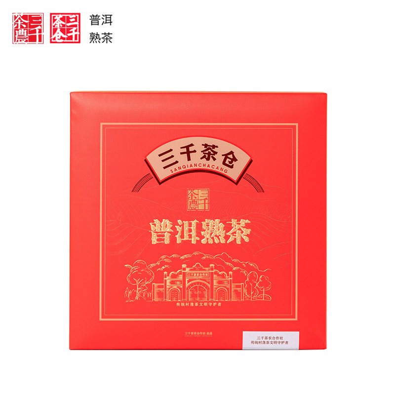三千茶业普洱熟茶白茶生普熟普茶饼定版礼盒装官方正品送礼长辈