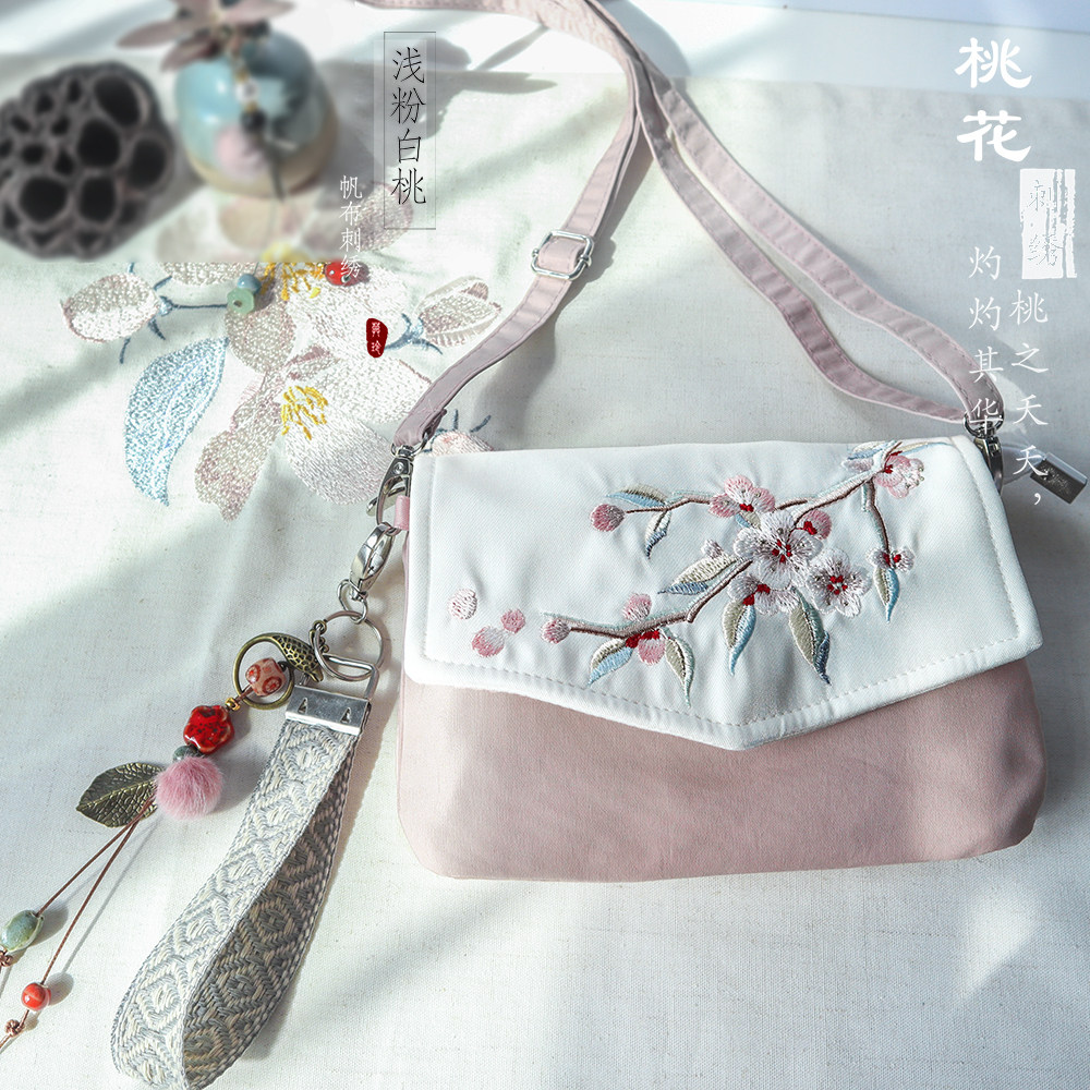新品6.8寸手机包中式复古绣花多隔层手拎手拿斜挎拉链零钱小包