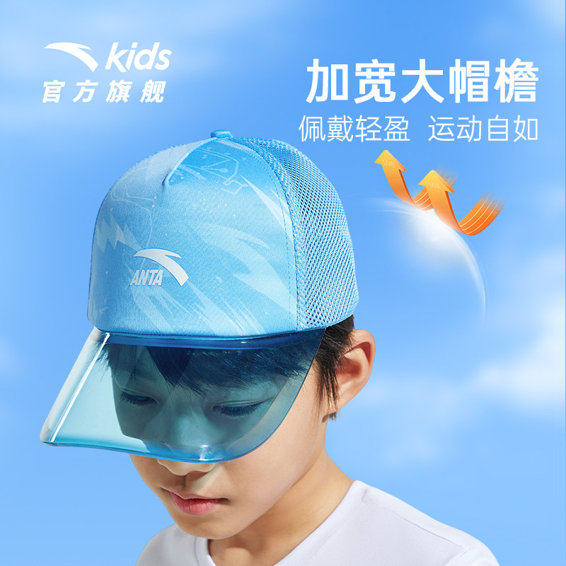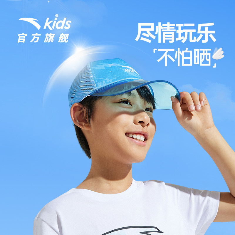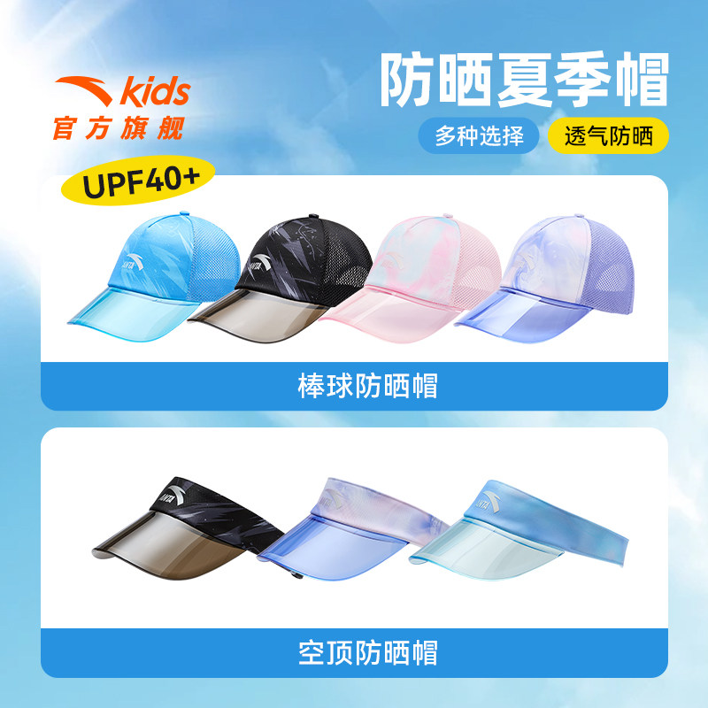 安踏儿童防晒帽户外透气遮阳帽2025夏女童棒球帽男童帽子空顶帽子