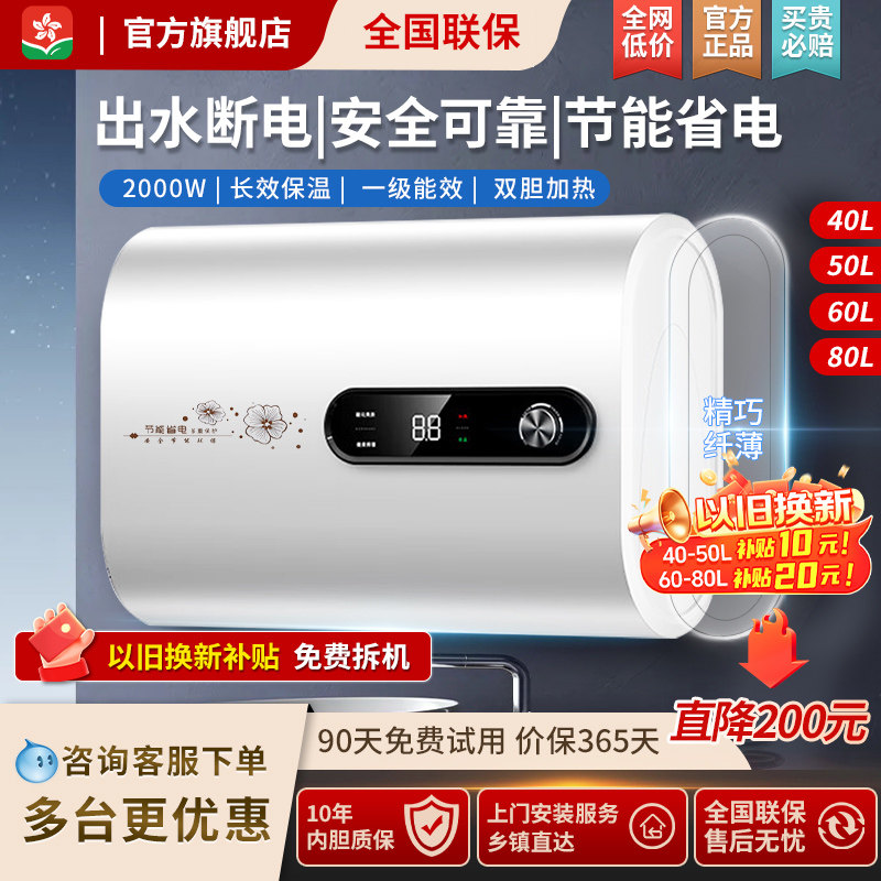 樱花雨电热水器家用卫生间洗澡淋浴圆桶双胆扁桶储水式租房用50L