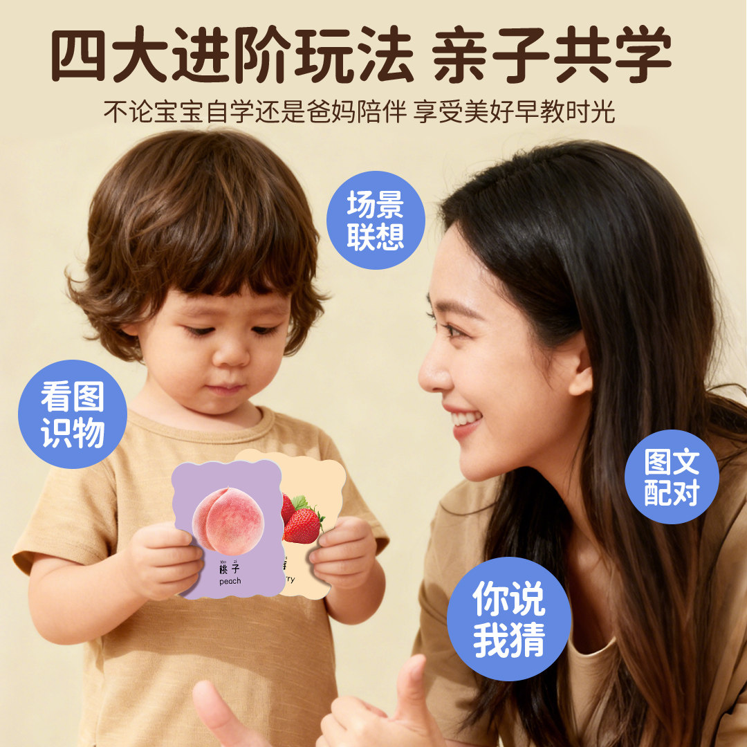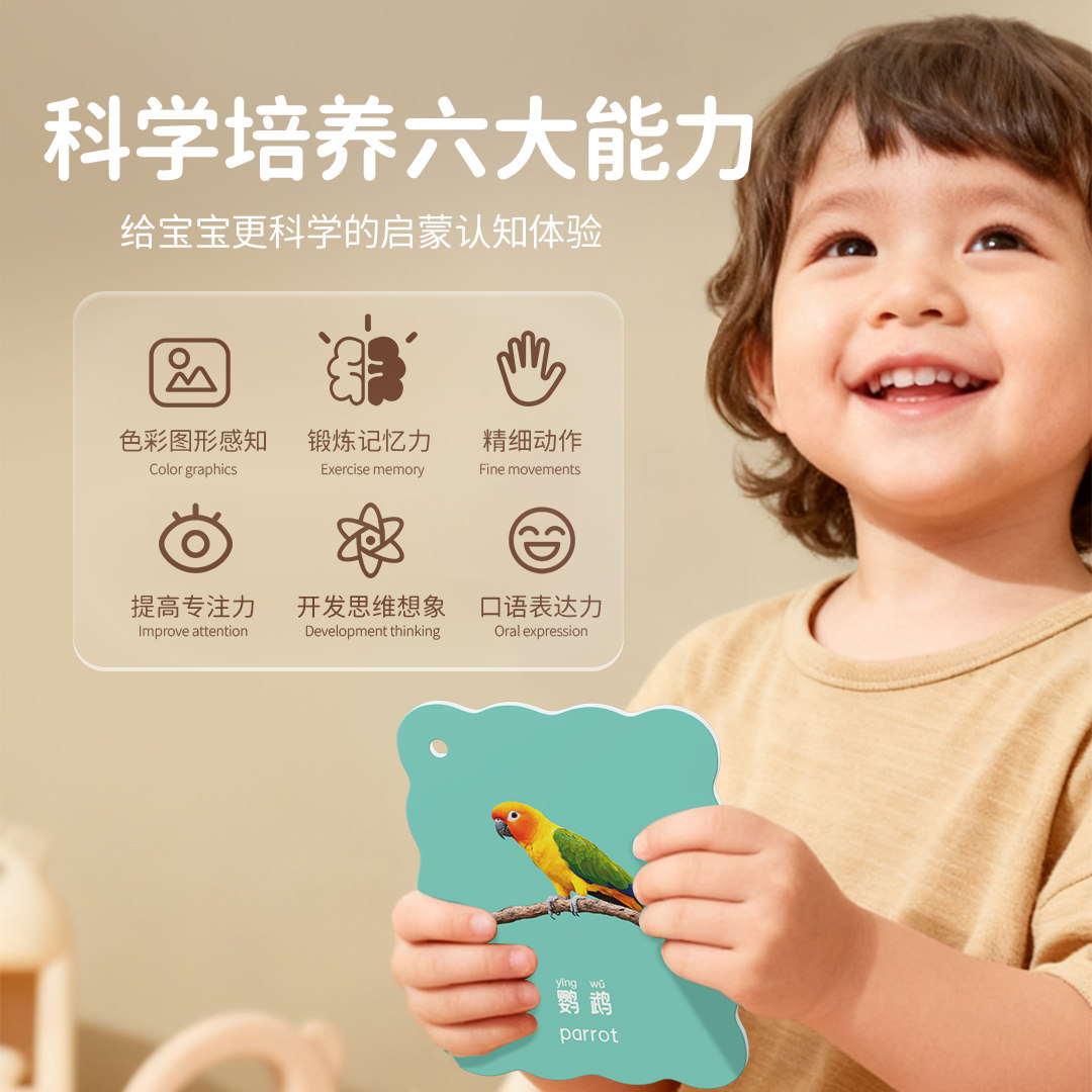 动物卡片认知早教儿童识字看图识物启蒙书婴幼儿宝宝一岁益智玩具