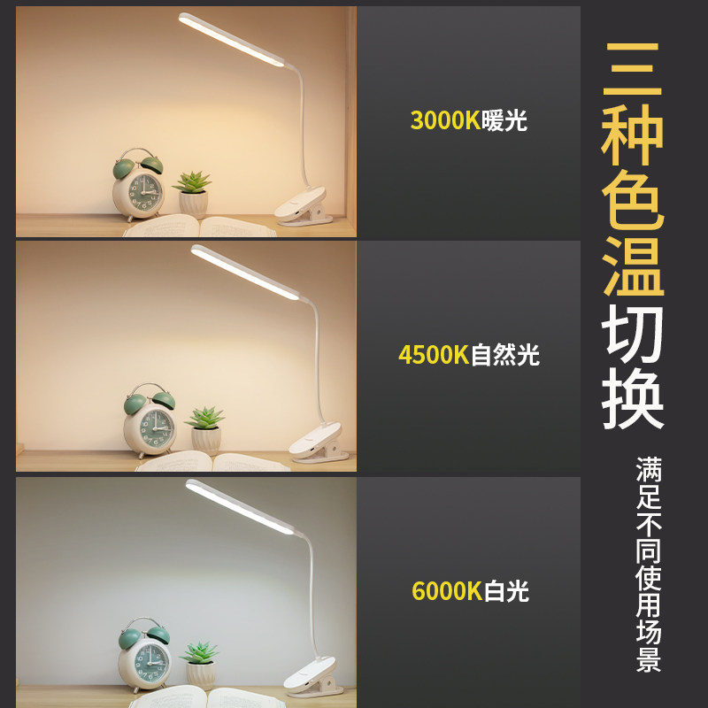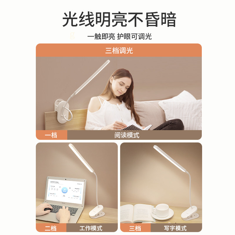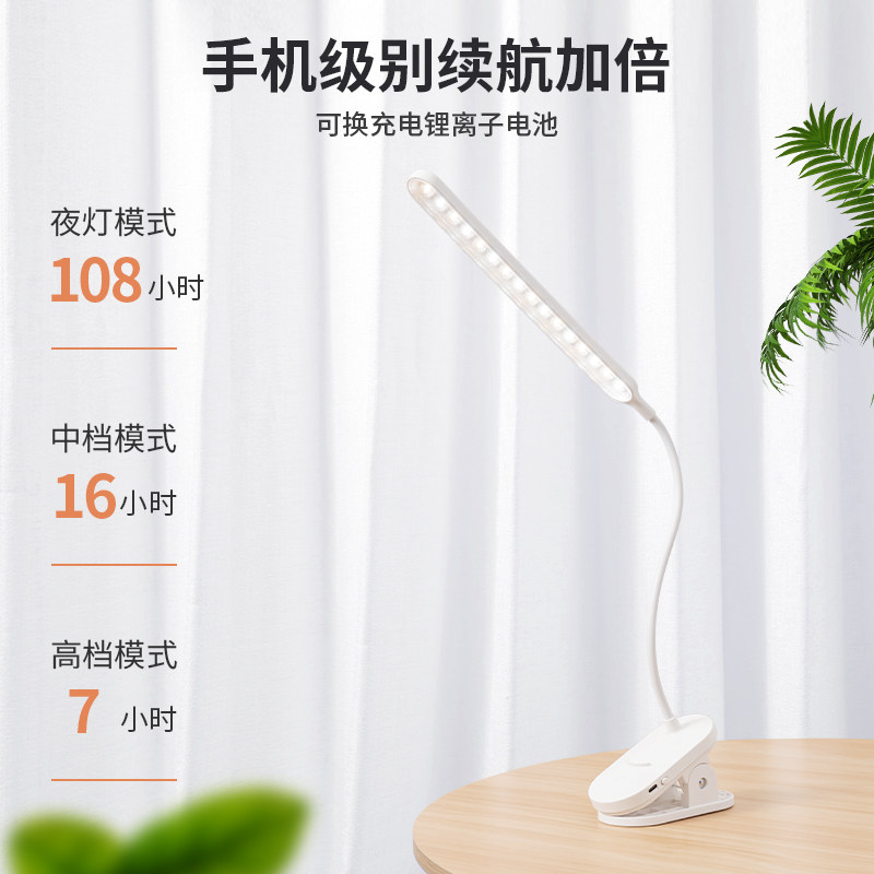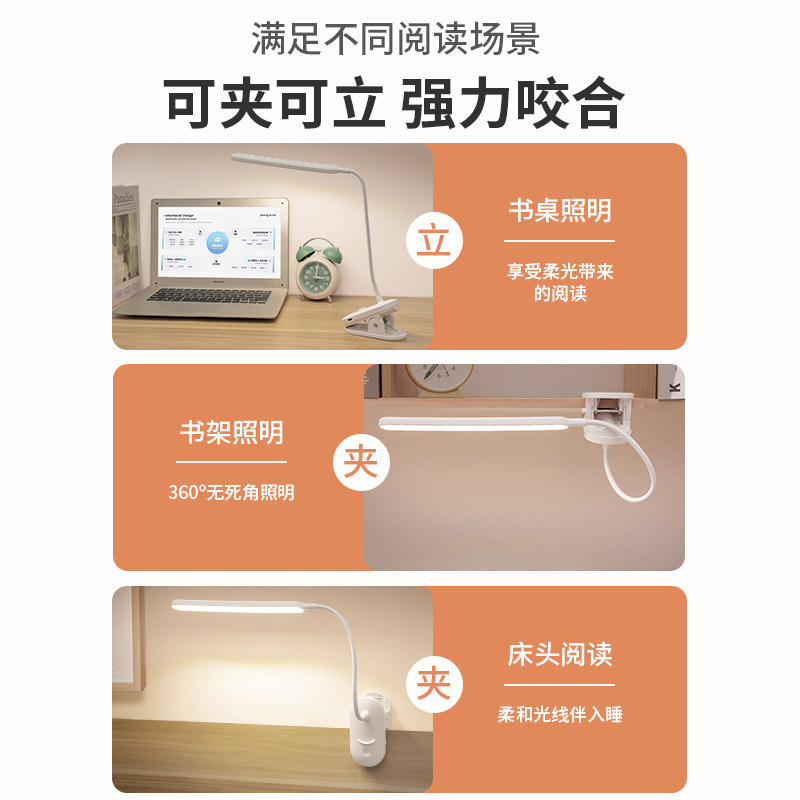 LED夹式小台灯儿童学习阅读护眼夹子灯充电插电床头夜灯两用暖光