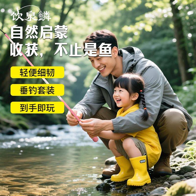 饮泉鳞亲子钓竿小物竿手竿短节竿溪流竿儿童钓鱼竿全套上手即钓