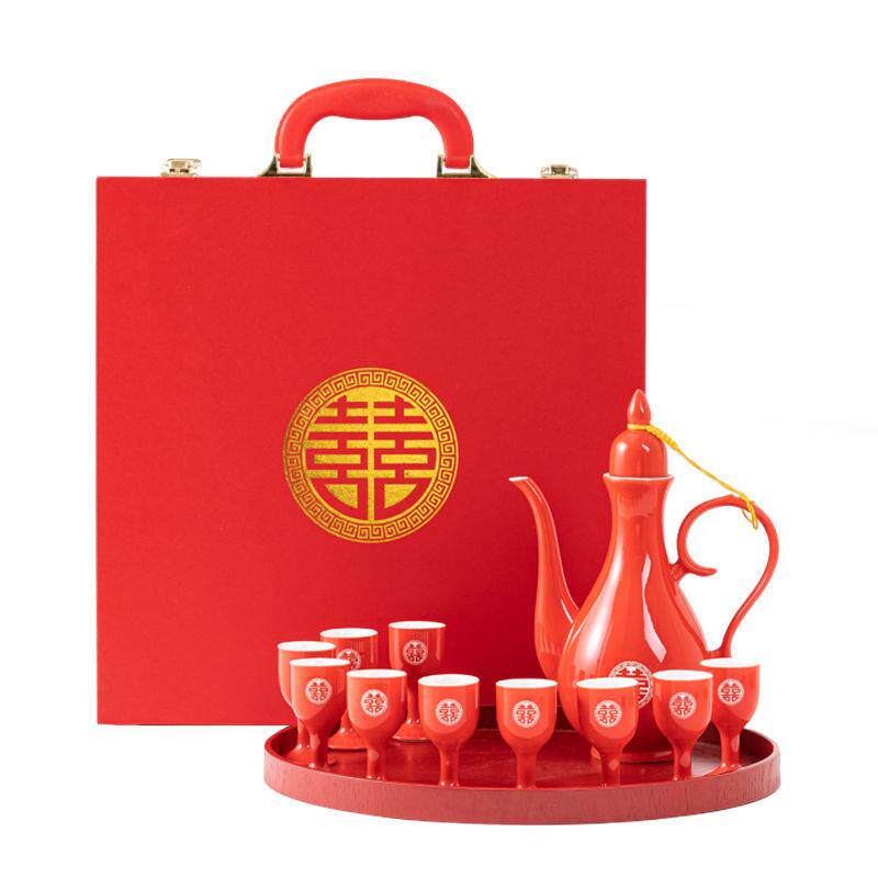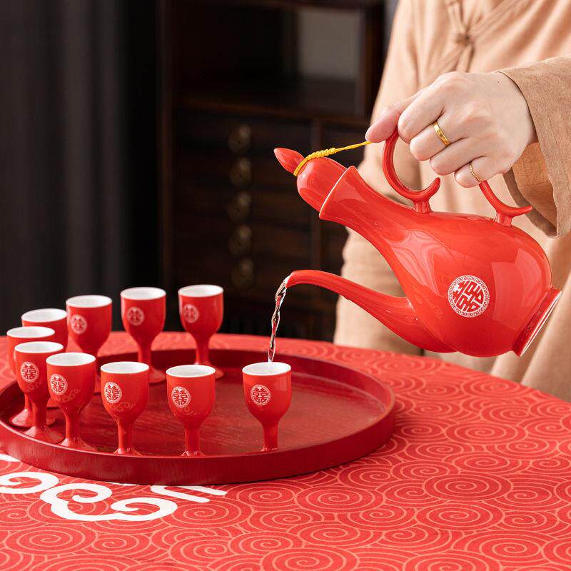 结婚陶瓷酒具套装中式婚礼敬酒杯喜庆仿古酒壶婚宴新人交杯酒对杯