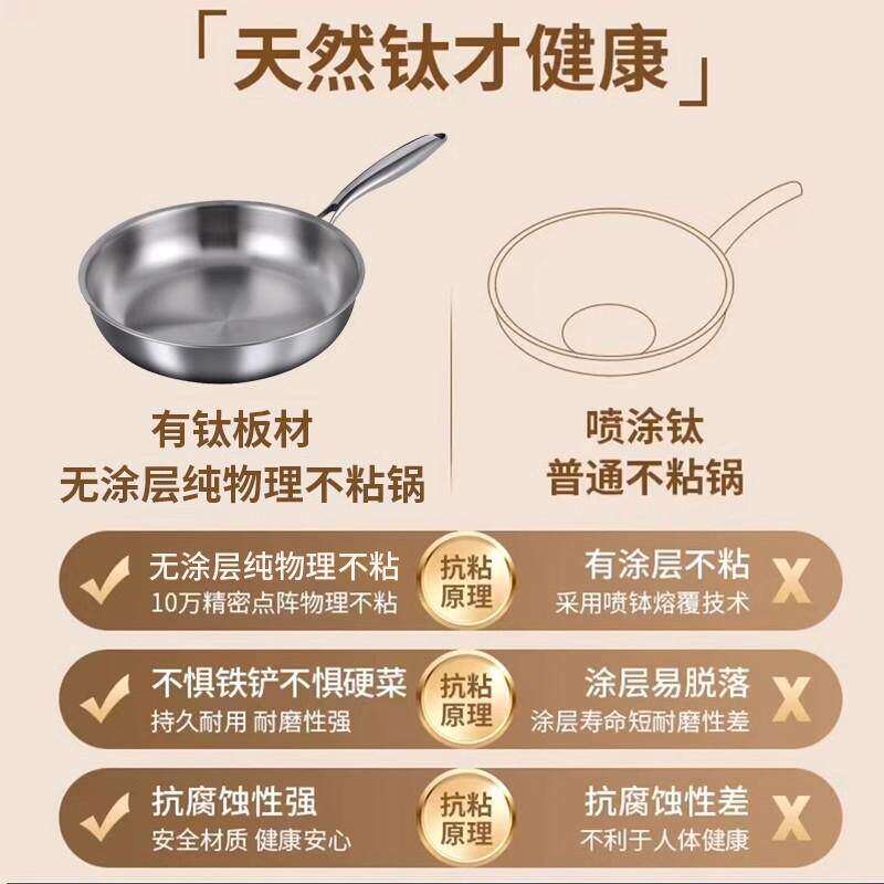 苏泊尔纯钛0涂层炒锅手工锻打不粘平底锅煎锅无油烟燃气 电磁炉a5