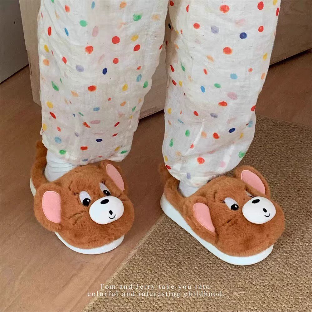 拖鞋棉韩版风猫和老鼠汤姆杰瑞男女冬季可爱情侣保暖毛毛鞋ins风
