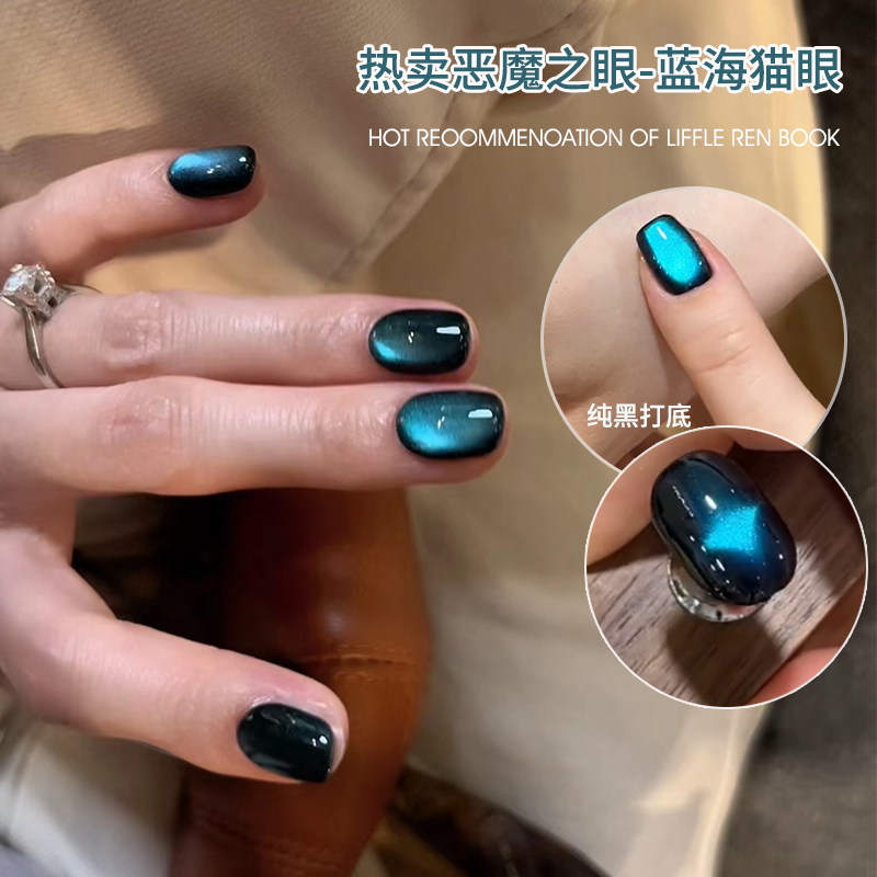 蓝色猫眼指甲油胶2025年新款春夏玻璃珠琥珀小灯泡晶石猫眼胶流光