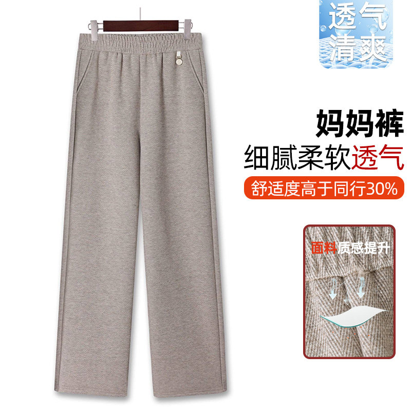 妈妈裤子春秋款松紧高腰弹力中老年女裤宽松大码直筒奶奶加绒长裤