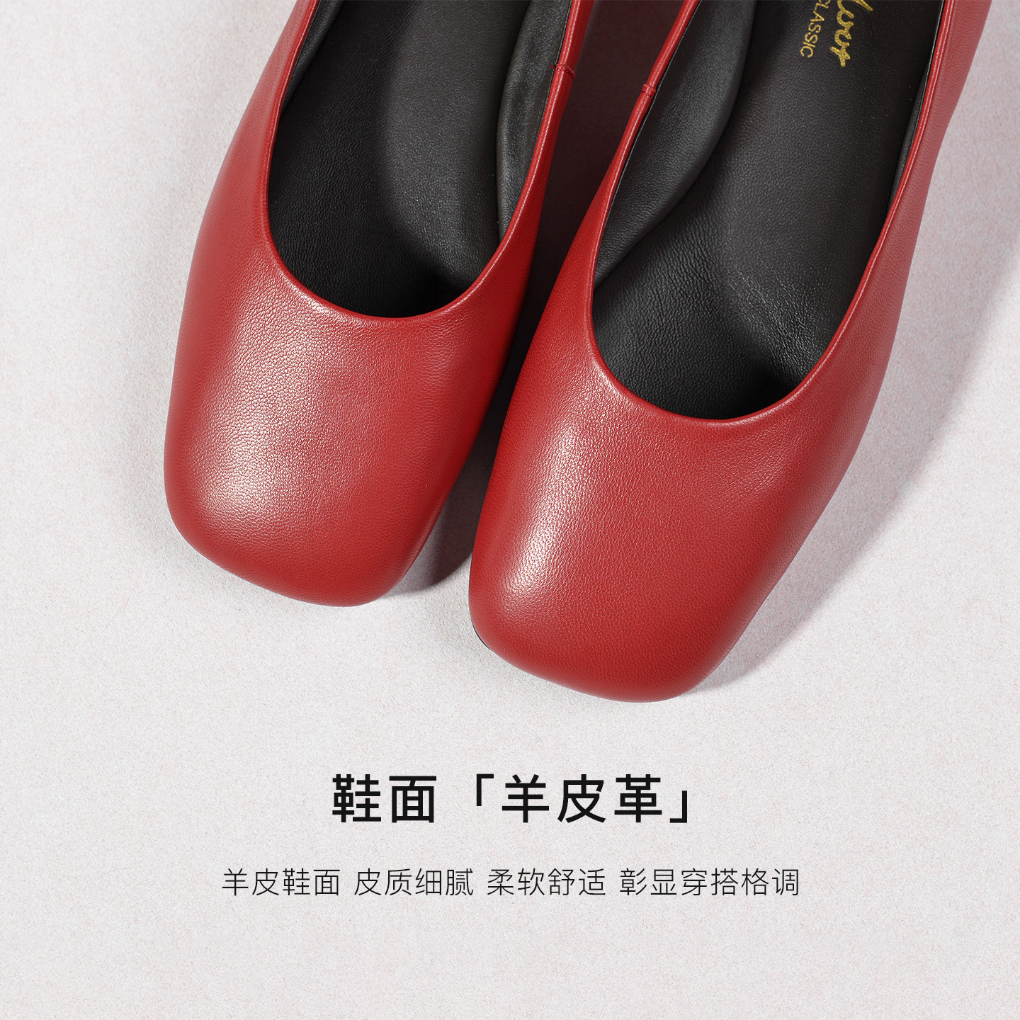 米霏~【羊皮版】红色单鞋女平底法式气质软底芭蕾瓢鞋温柔晚晚鞋