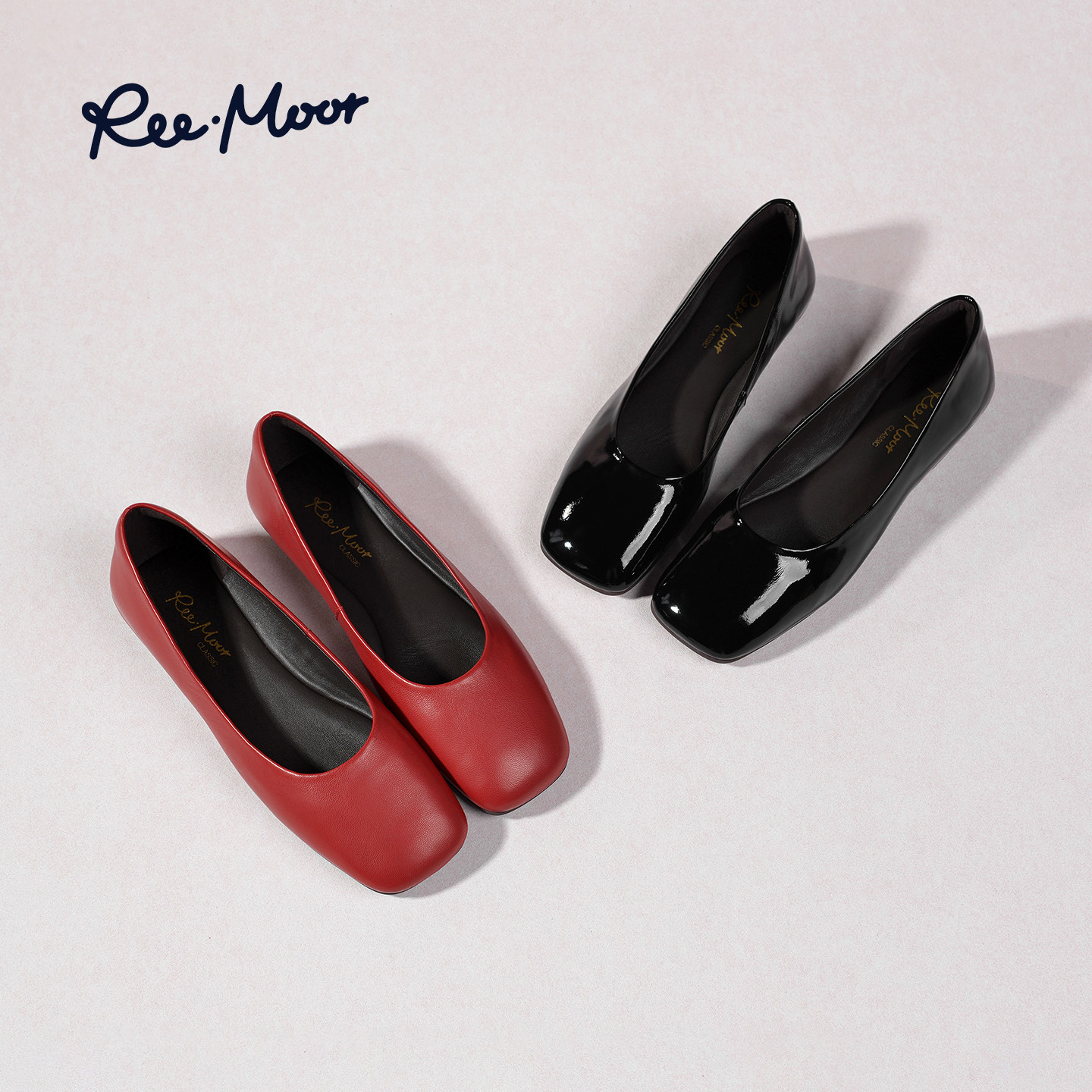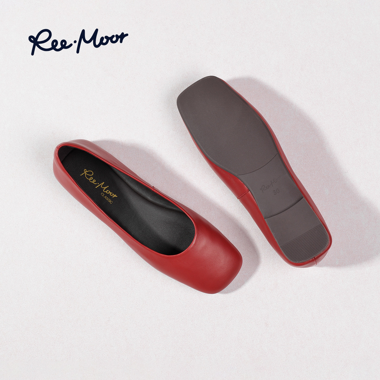 REEMOOR睿慕2025秋季新款法式方头浅口女平底休闲通勤羊皮单鞋