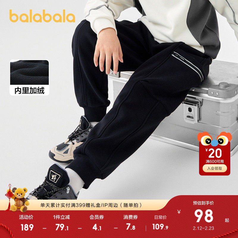 巴拉巴拉童装儿童长裤男童秋冬保暖加绒裤子洋气加厚休闲大童运动