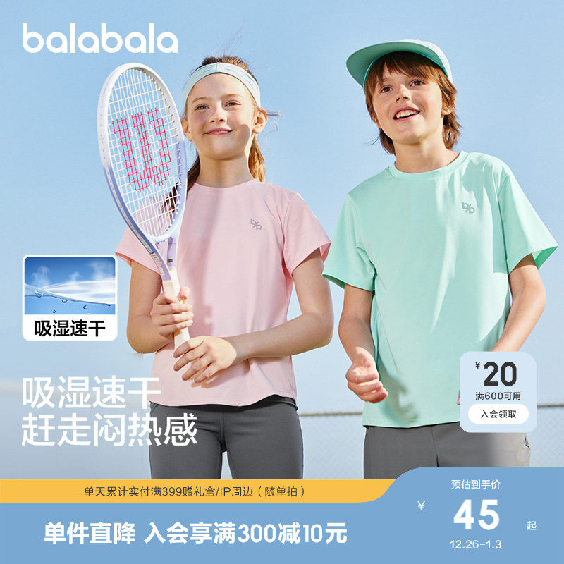 巴拉巴拉童装男童短袖t恤女童2025新款夏装中大童衣服儿童速干衣