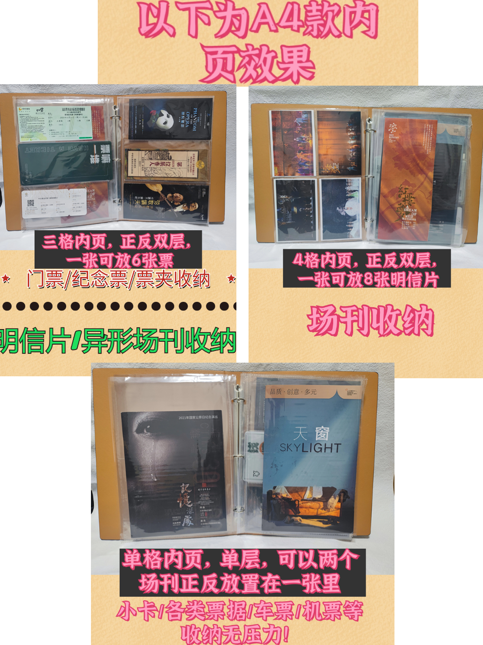 场刊票根收纳册票据收集电影门票演唱会场刊明信片收纳A4活页单格