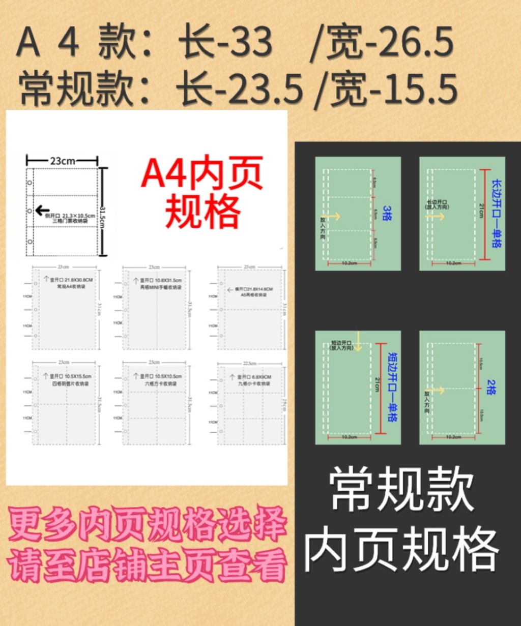 A4高清活页多规格正方格竖长条卡片机票收纳册内页袋活页样品册袋
