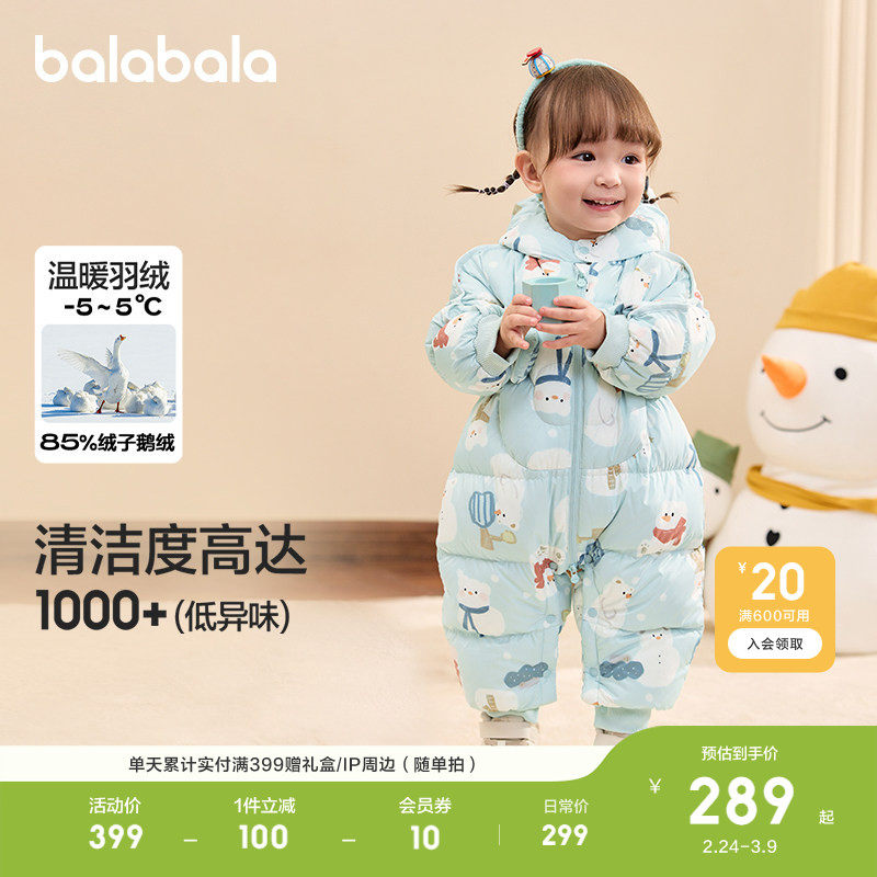 巴拉巴拉童装新生婴儿连体衣宝宝冬装外出哈衣爬服连帽鹅绒萌趣潮