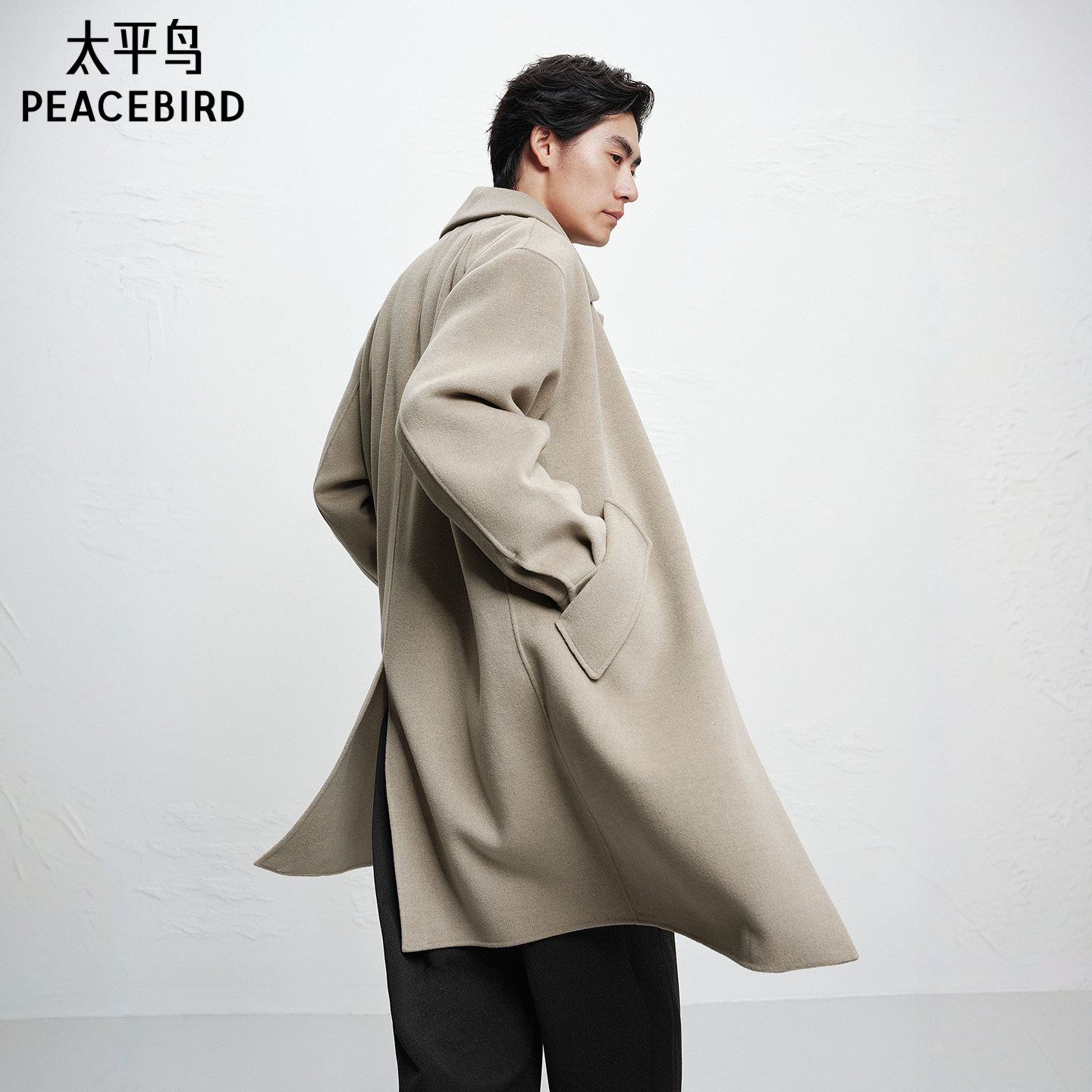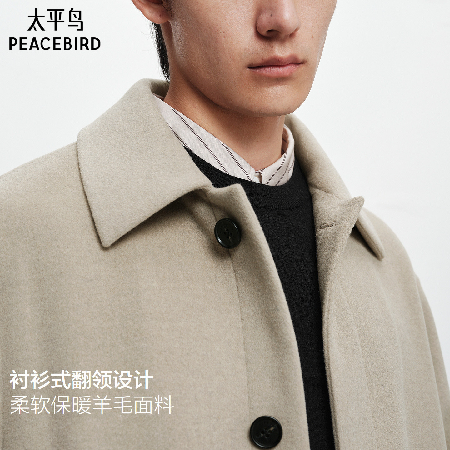 【商场同款】太平鸟男装休闲毛呢大衣男士时尚羊毛大衣B1AAF4415@