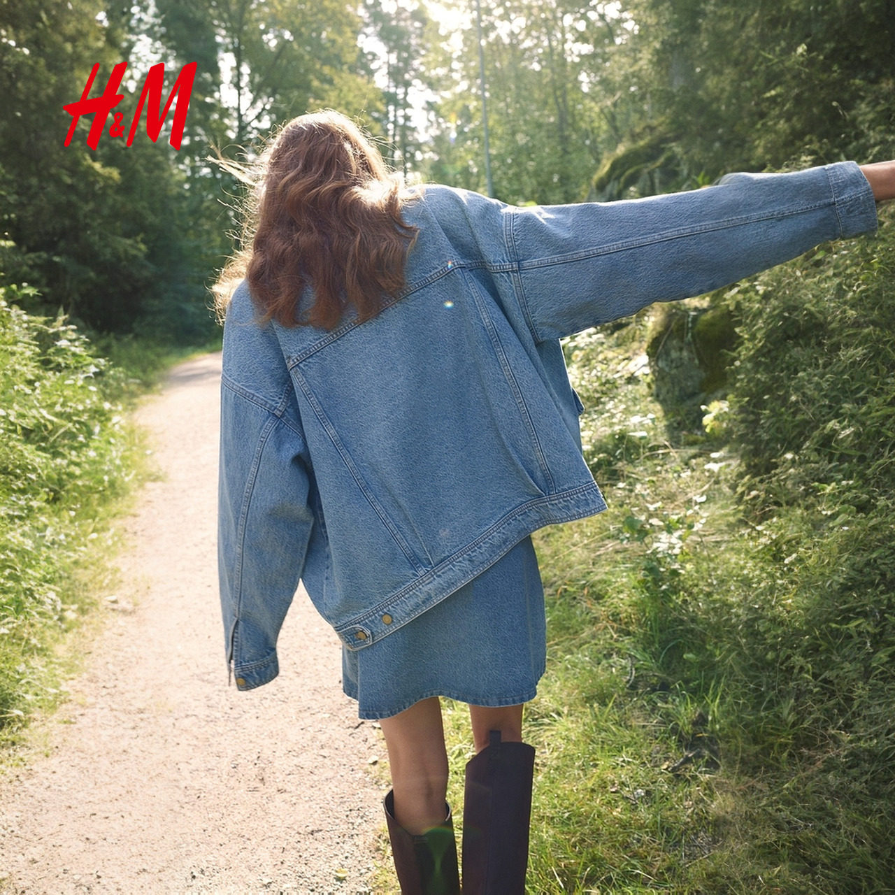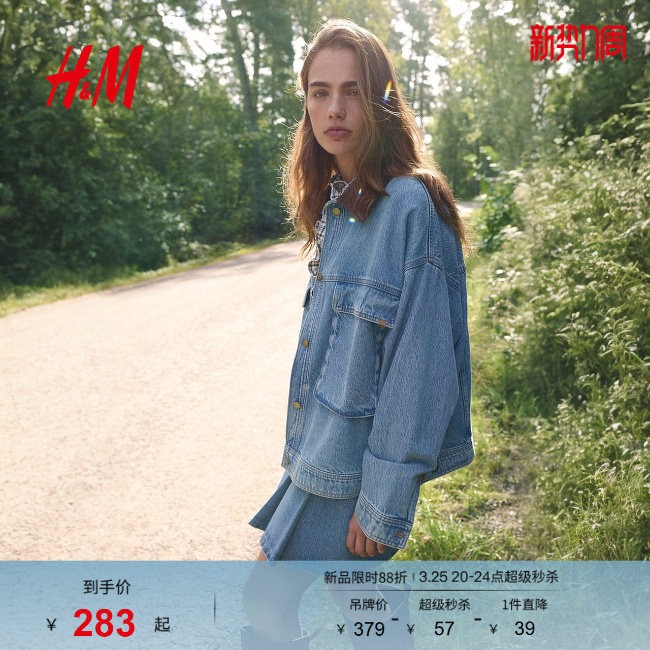 HM女装短外套春季大廓形美式潮流时尚牛仔外套1303415