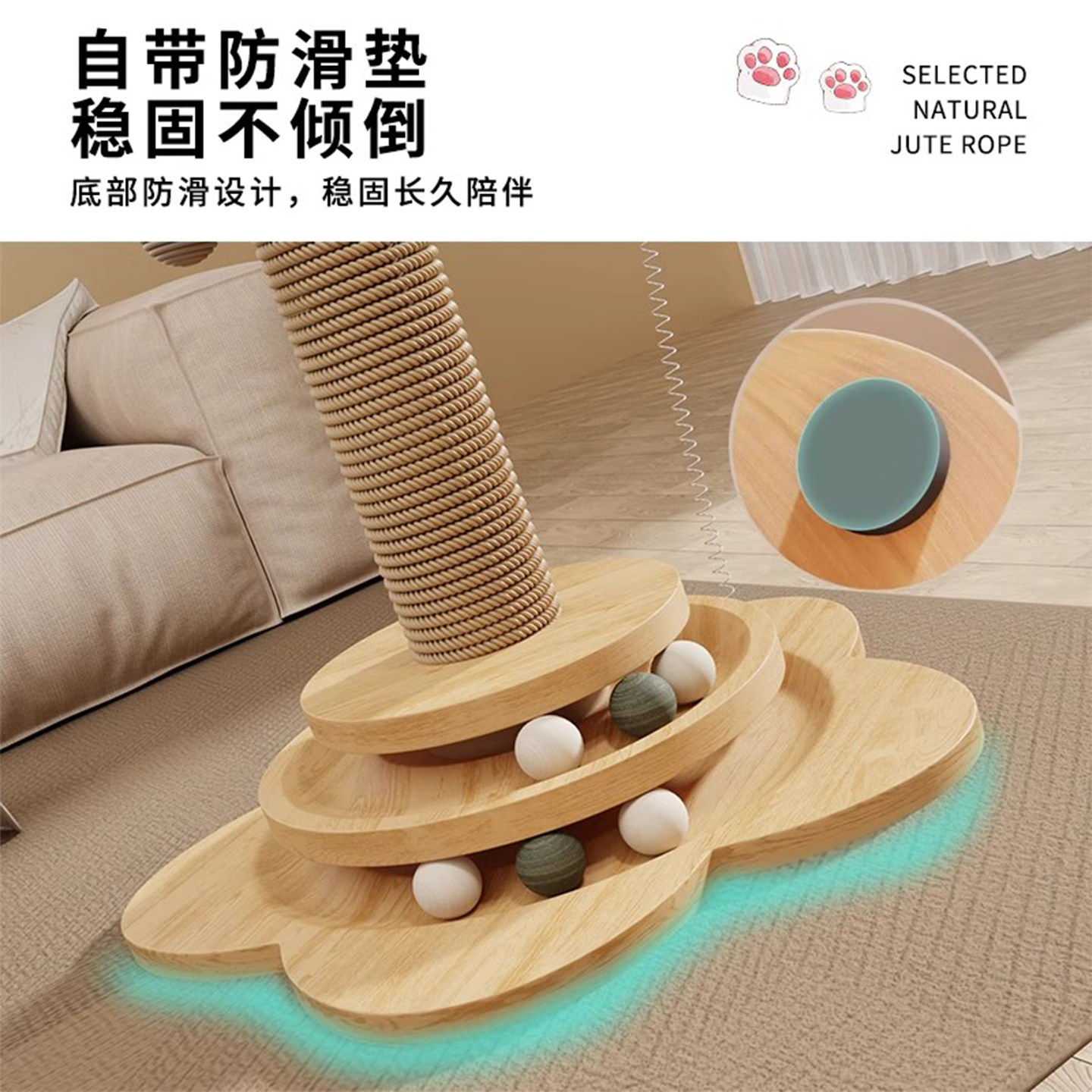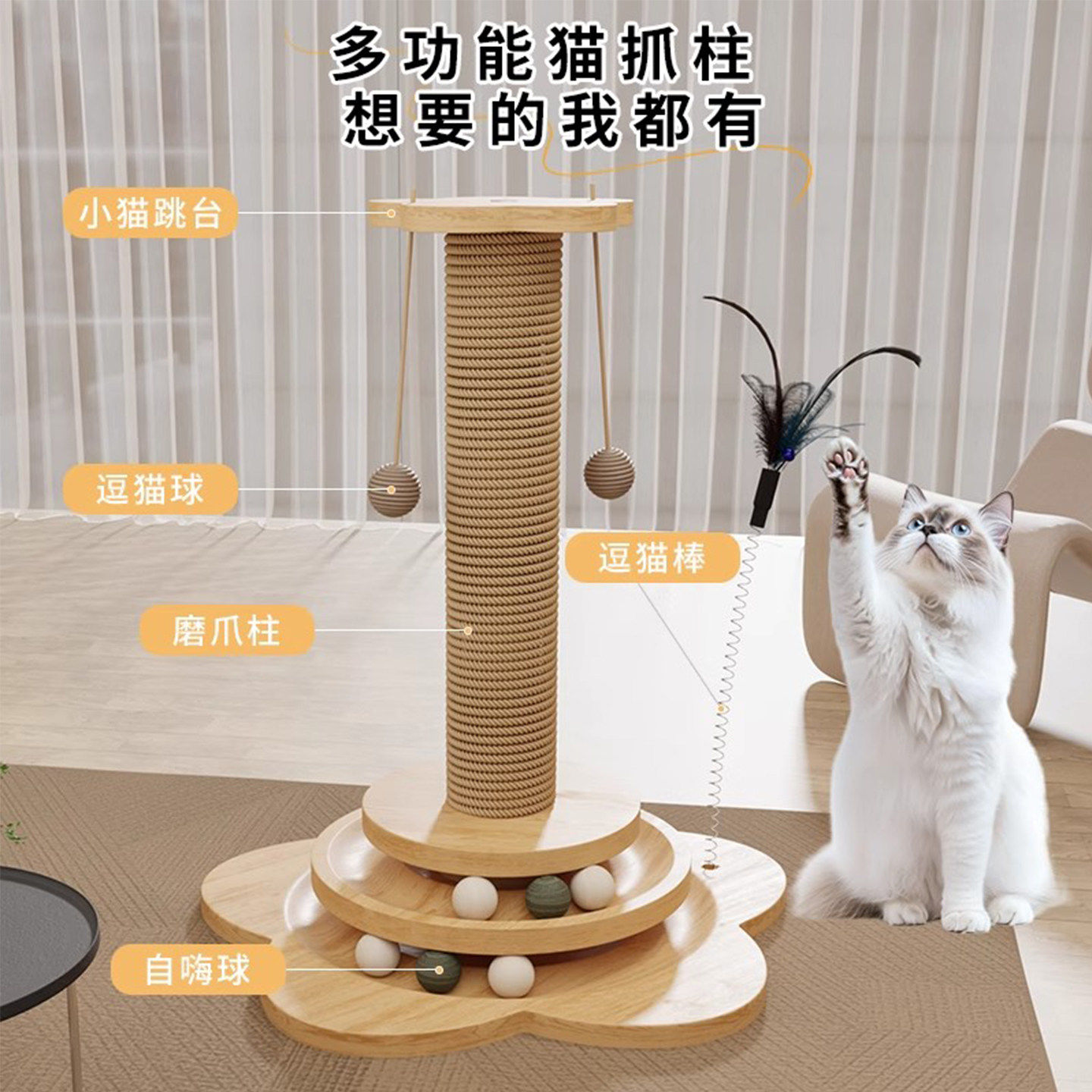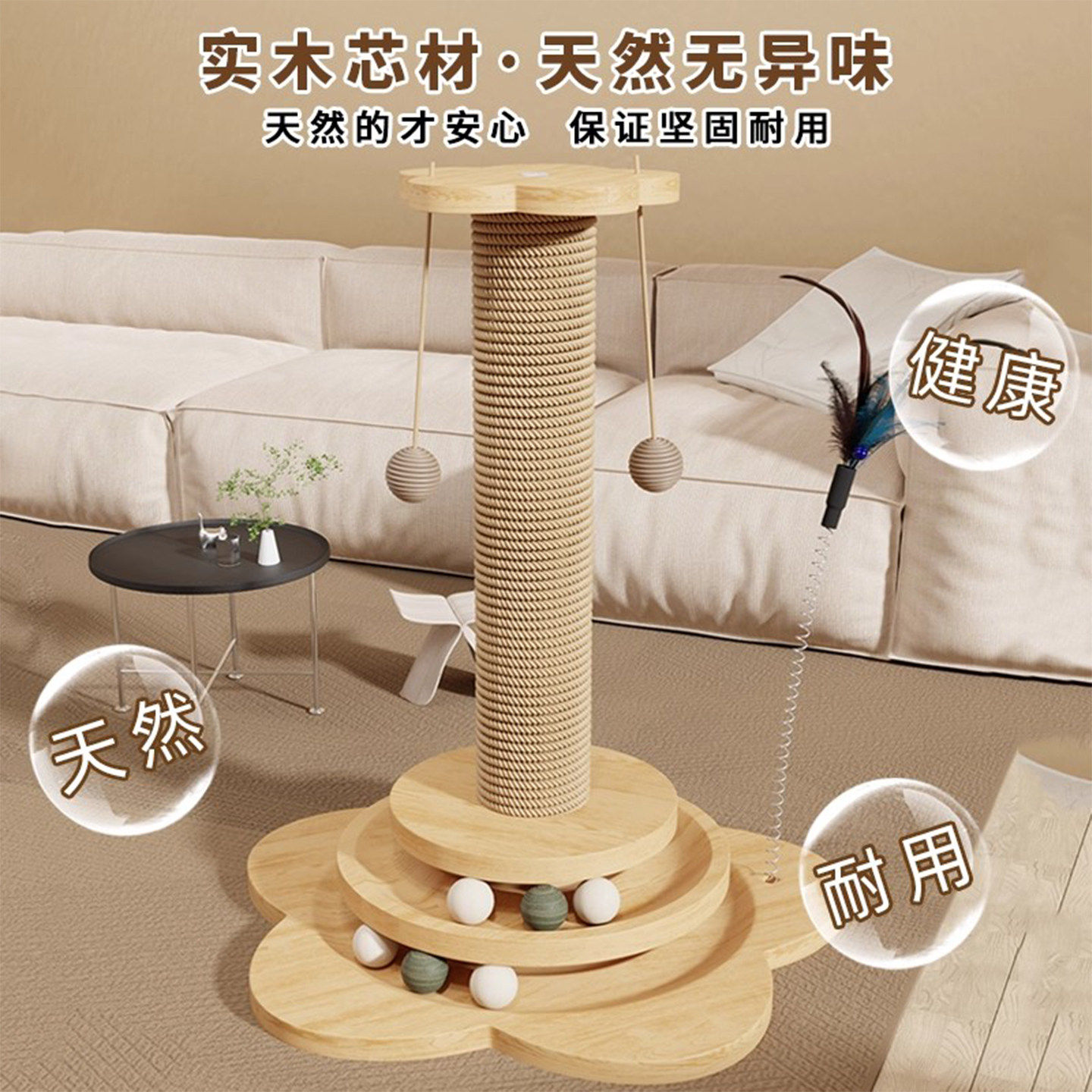 剑麻猫抓柱子立式耐磨不掉屑家用逗小猫咪玩具自嗨解闷神器猫抓板