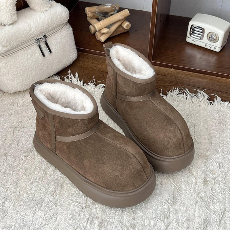 小黄豚卡皮巴拉绒面雪地靴女2025冬新款大头短靴加厚羊毛保暖棉鞋