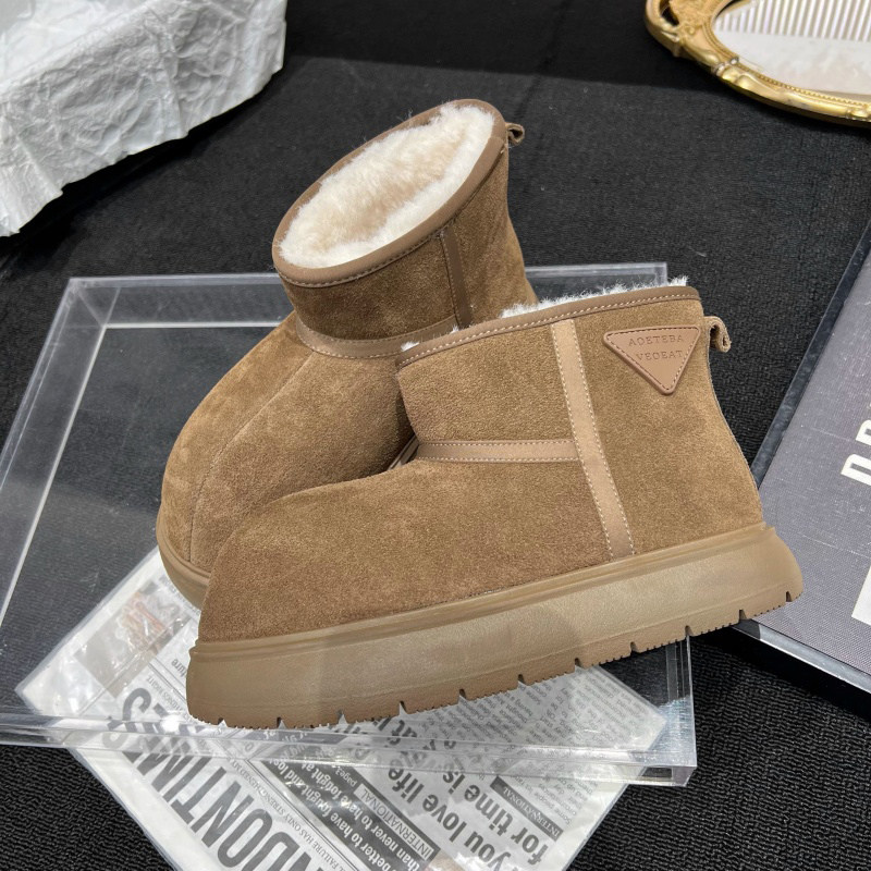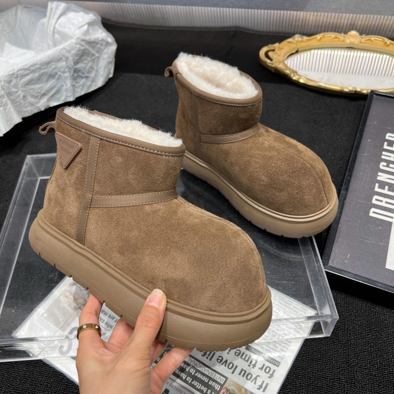 miu家厚底雪地靴女冬季真皮短靴羊毛侧拉链增高厚底加绒毛毛棉鞋