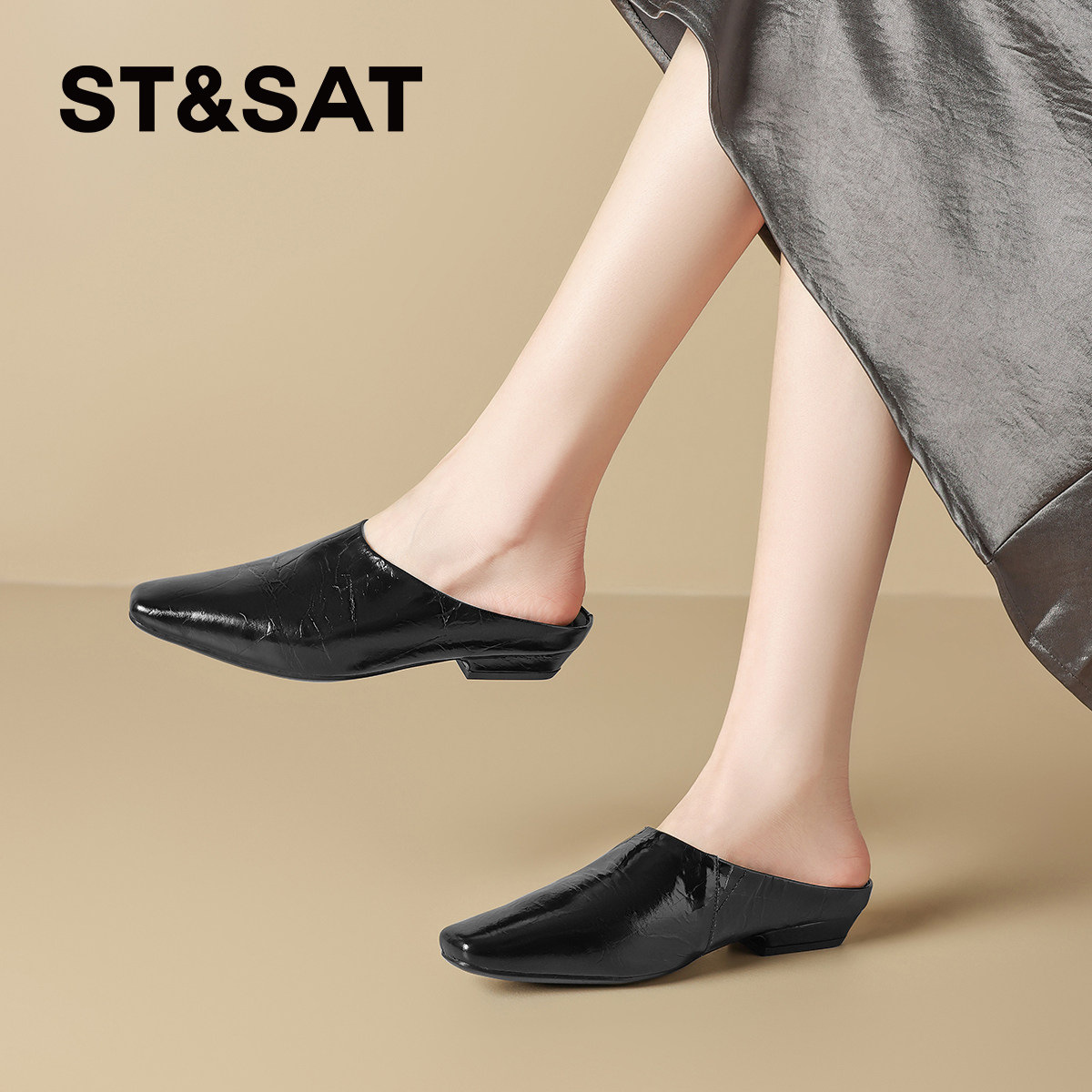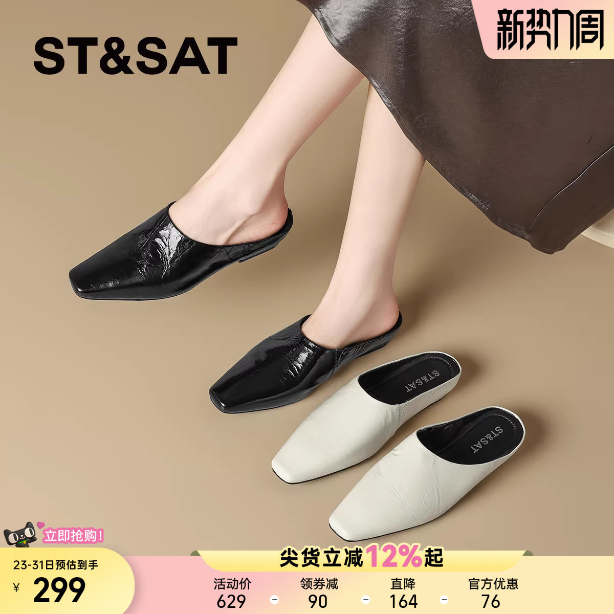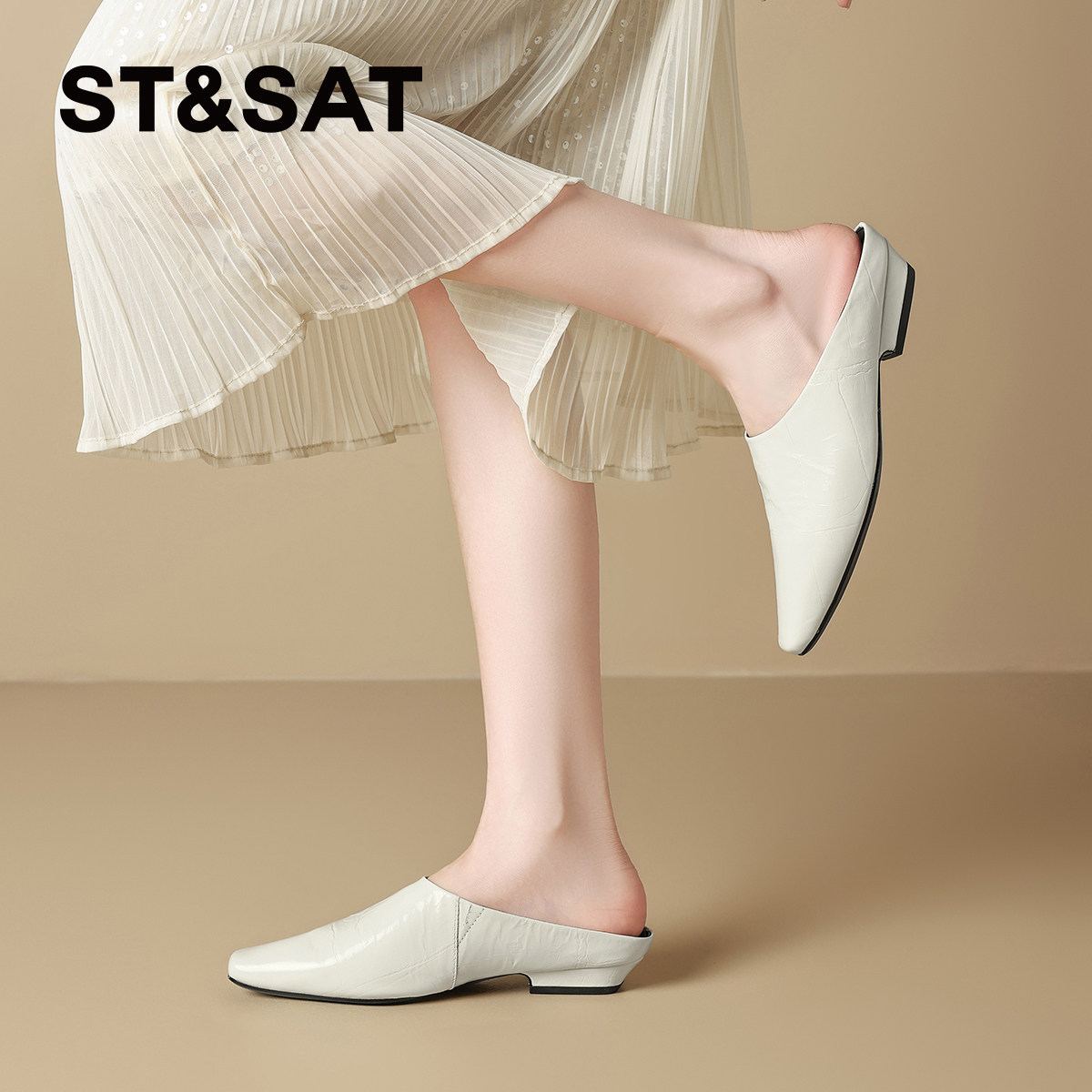 星期六高级感真皮包头拖鞋女2025夏季新款法式牛皮外穿懒人穆勒鞋
