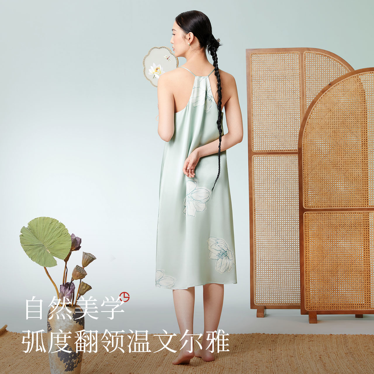 金三塔真丝睡裙丝滑100%桑蚕丝性感吊带裙睡衣女简约纯色家居服