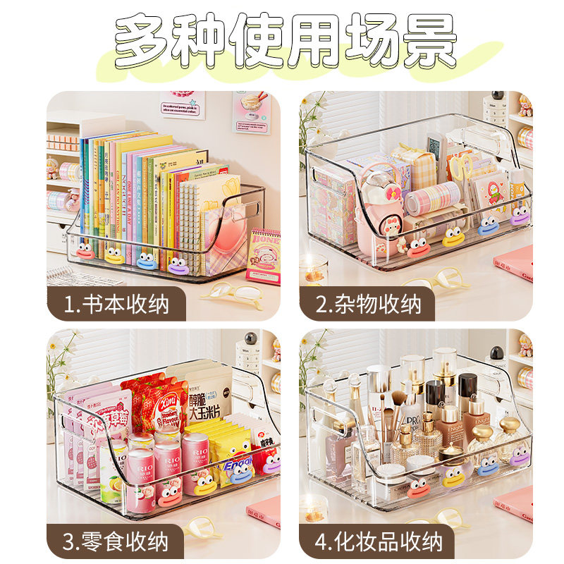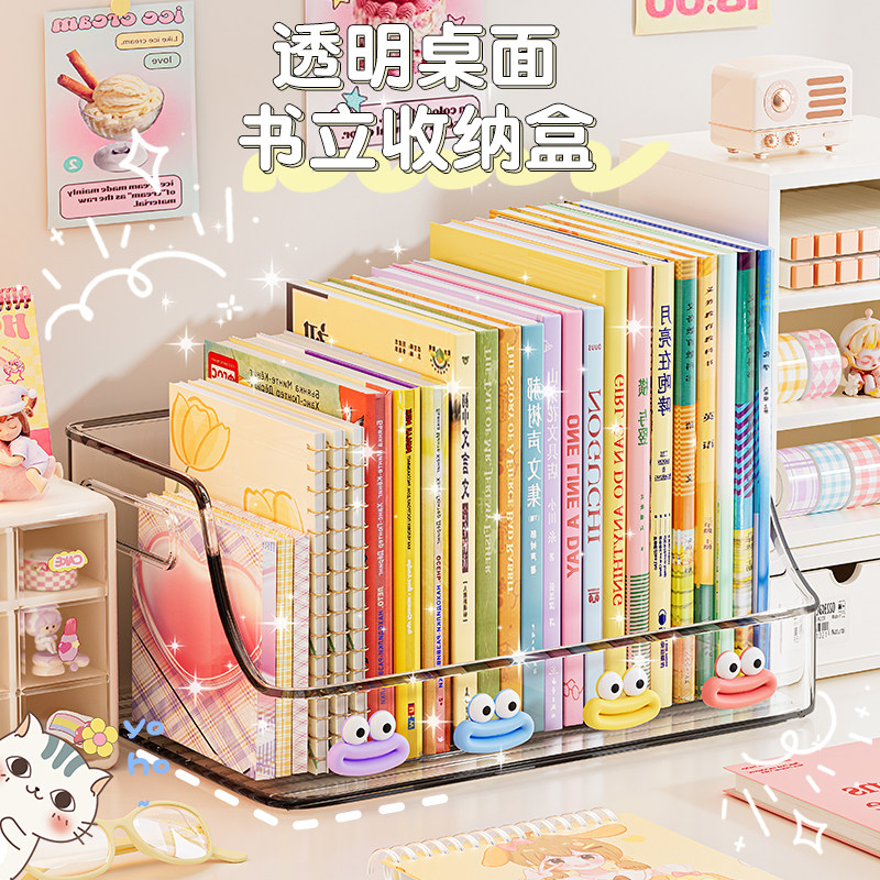 简约透明大容量桌面收纳盒化妆品整理面膜盒学生宿舍书盒书架书立