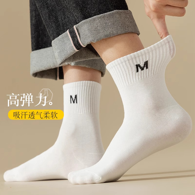 男士袜子男款纯棉春秋季中筒袜100%全棉吸汗防臭运动袜长袜防滑