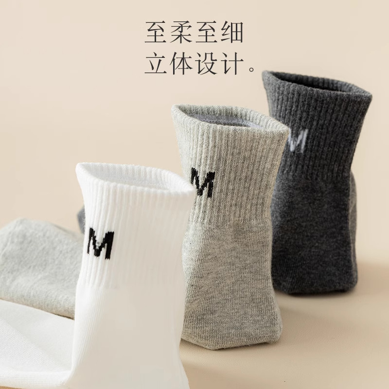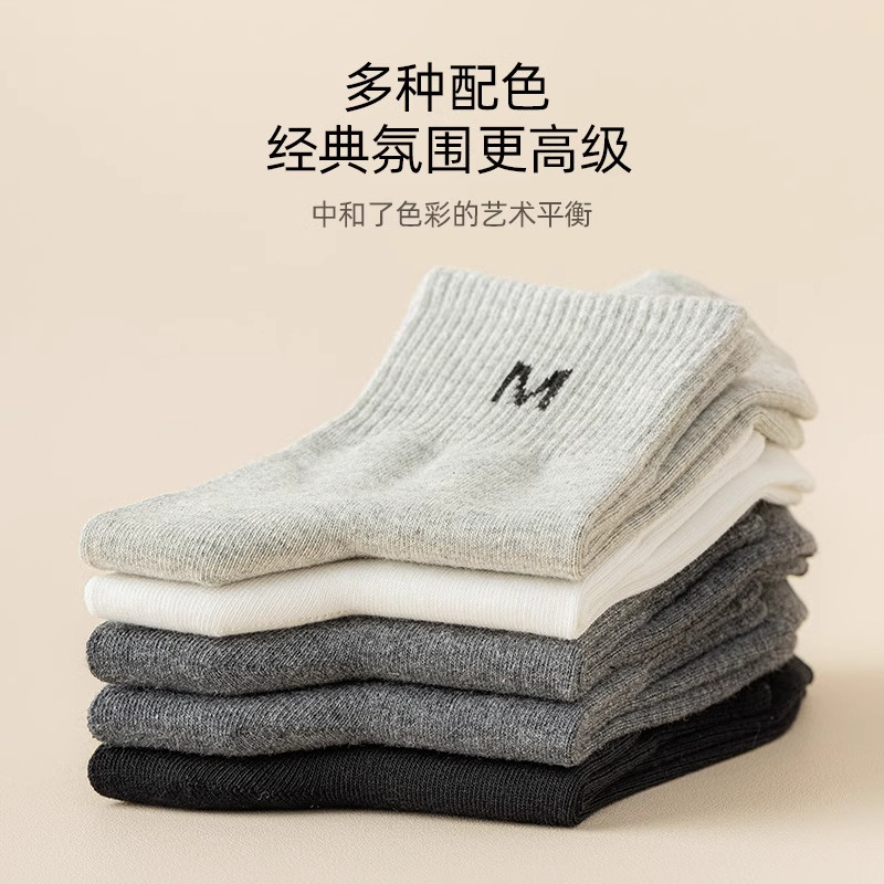 棉伙棉伴纯棉中筒袜抗起球男女纯色透气舒适耐穿日常百搭