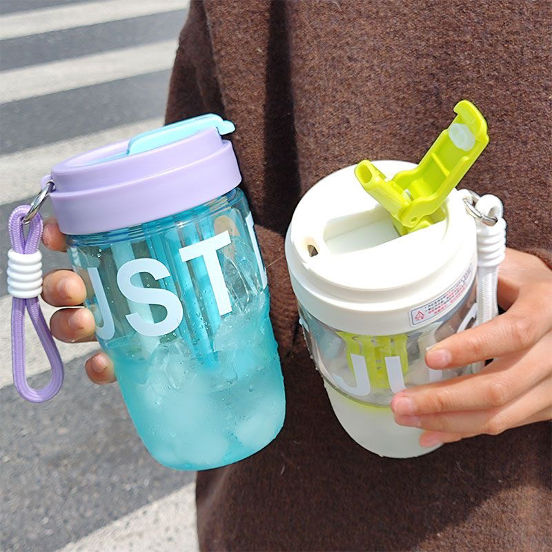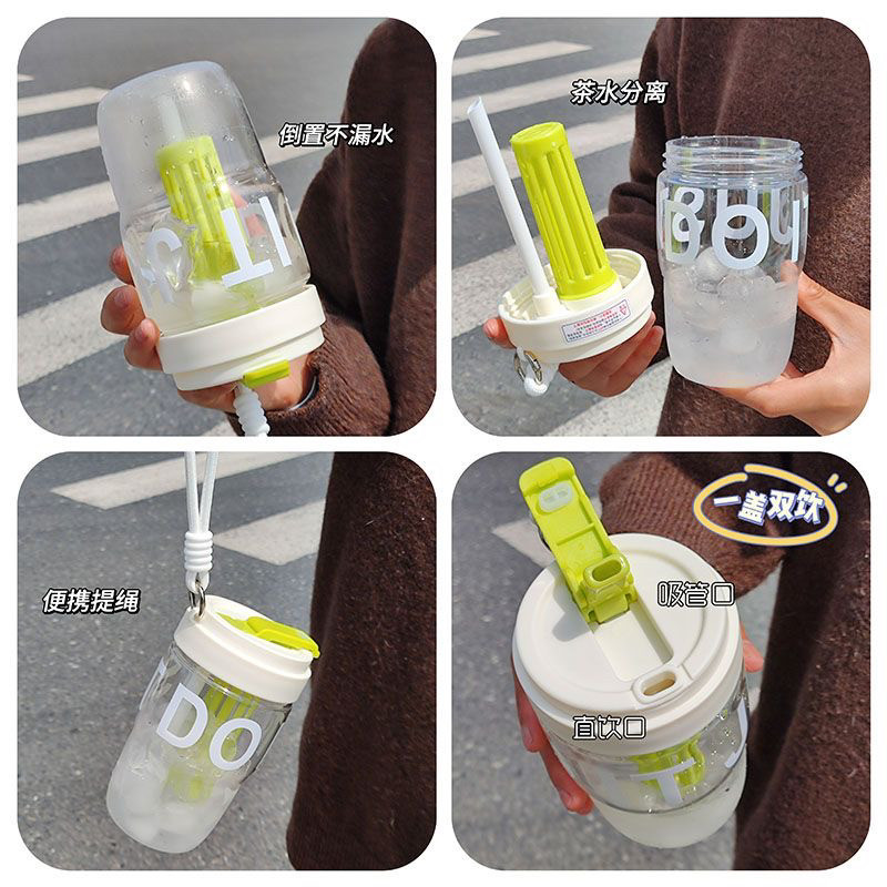 高颜值车载水杯2026新款女生泡茶杯双饮吸管杯可爱提手果茶随行杯