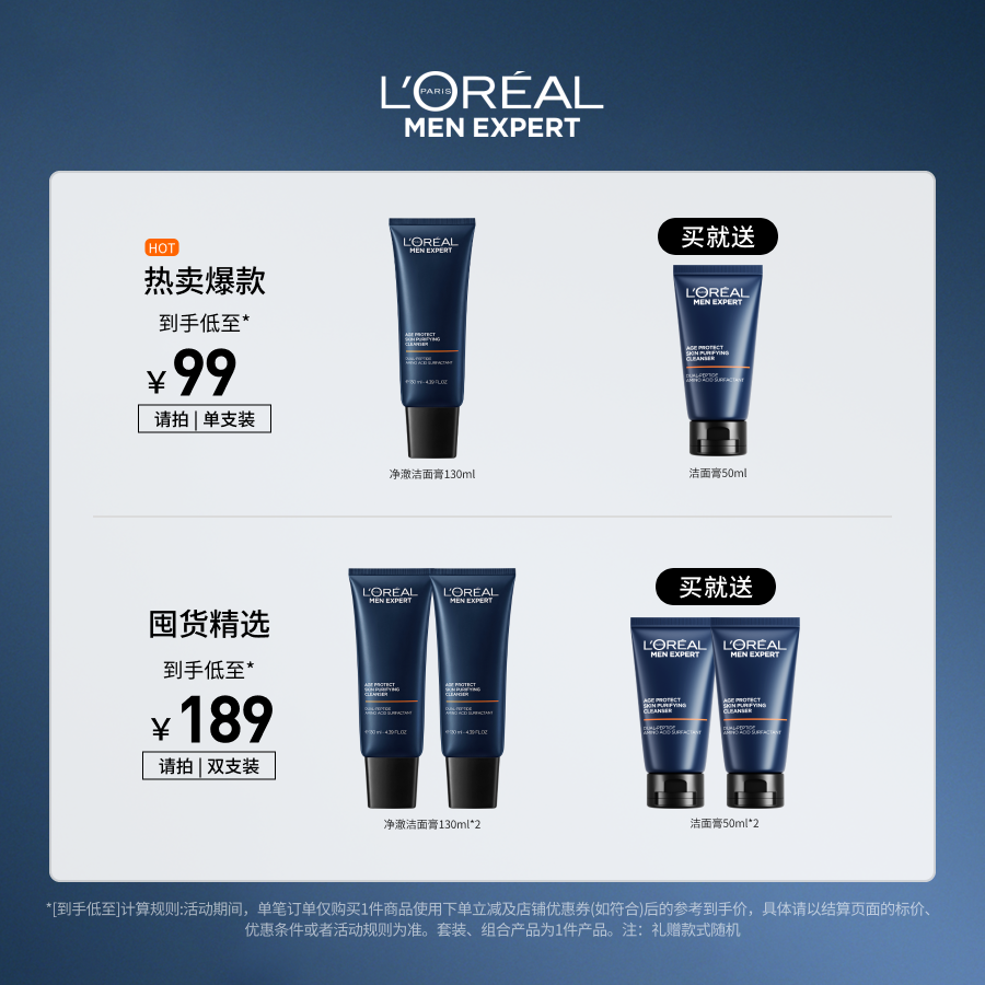 欧莱雅男士氨基酸洗面奶温和清洁紧致水润洁面乳男生专用官方正品