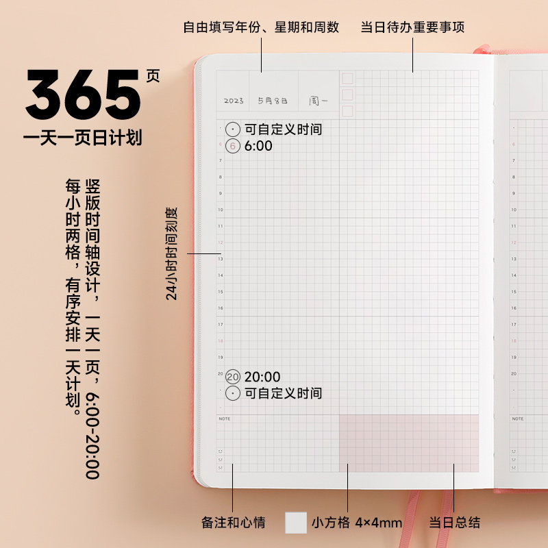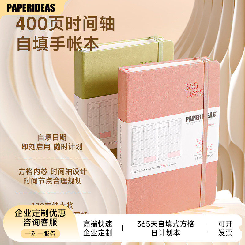 PAPERIDEAS自填手帐本效率手册大学生考研时间轴日计划笔记本日历日程本365days企业商务定制LOGO手账