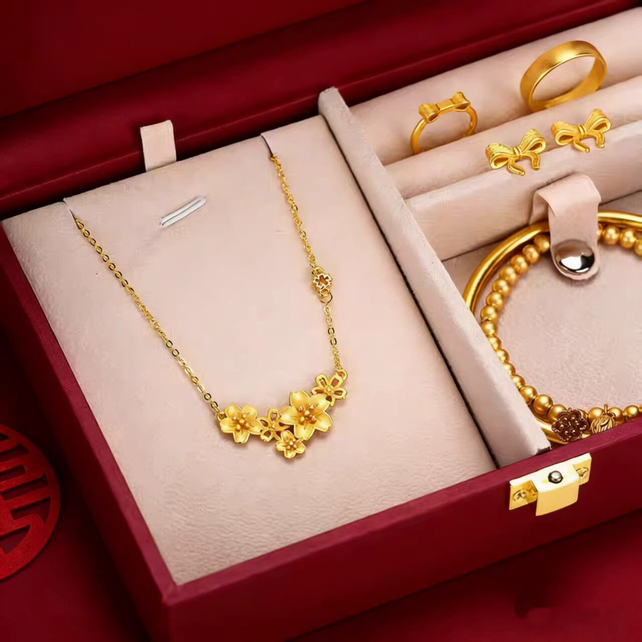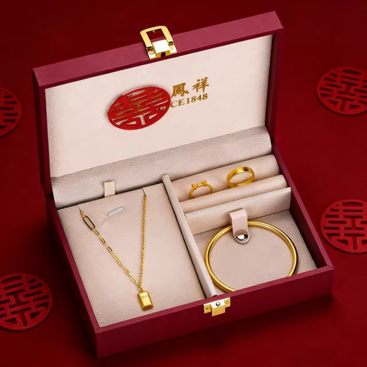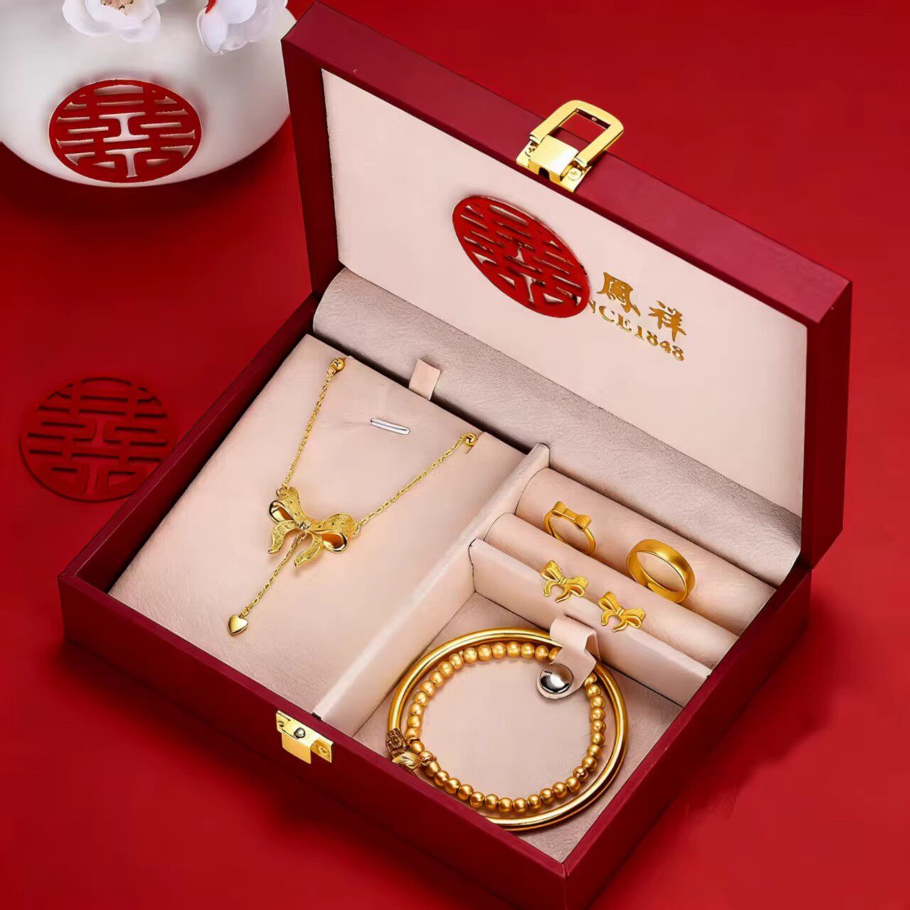假三金首饰一套订婚仿真沙金手镯五金套装结婚摆台道具婚礼假黄金