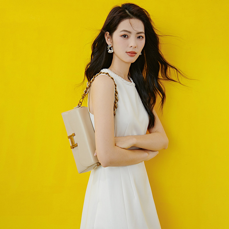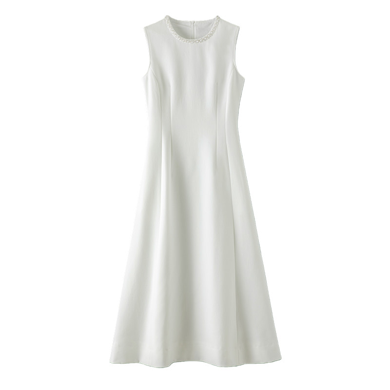 晚白2026年春新款赫本风白色裙子订婚领证小礼服裙钉珠无袖连衣裙