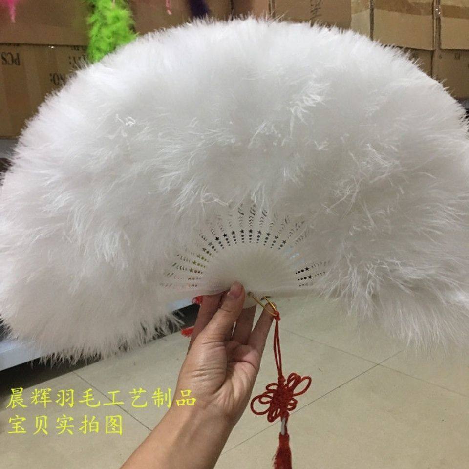 羽毛纯手工中式舞蹈扇折扇25骨羽毛升级版舞台走秀扇