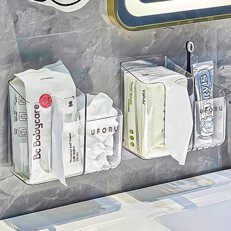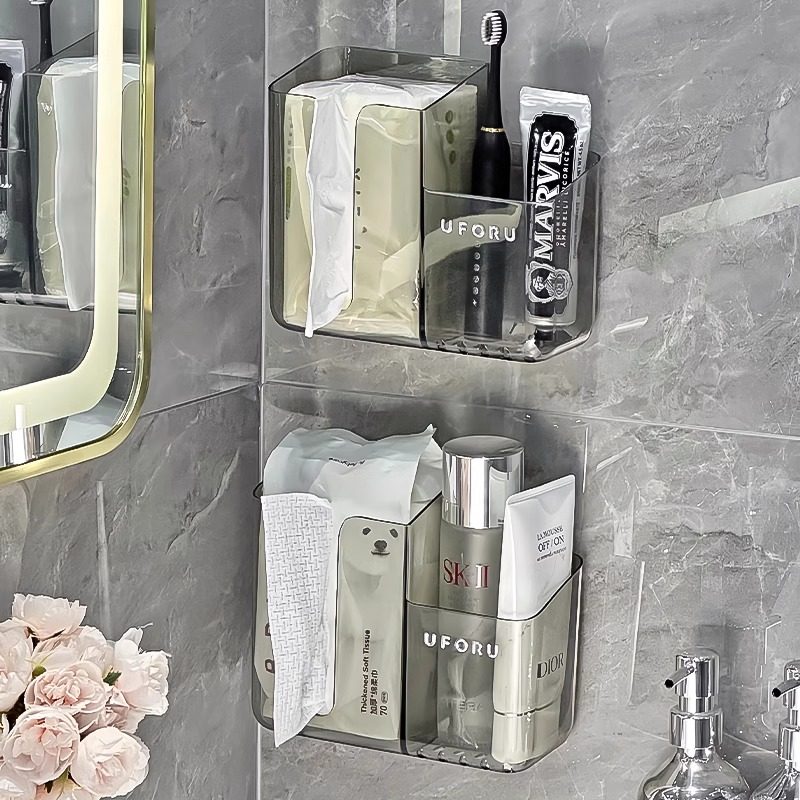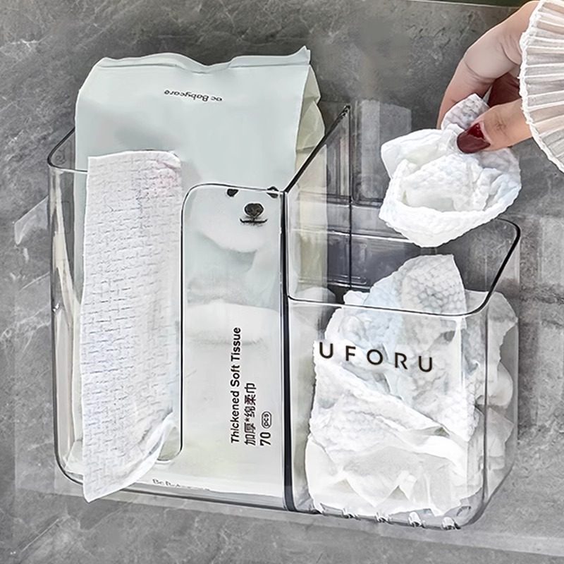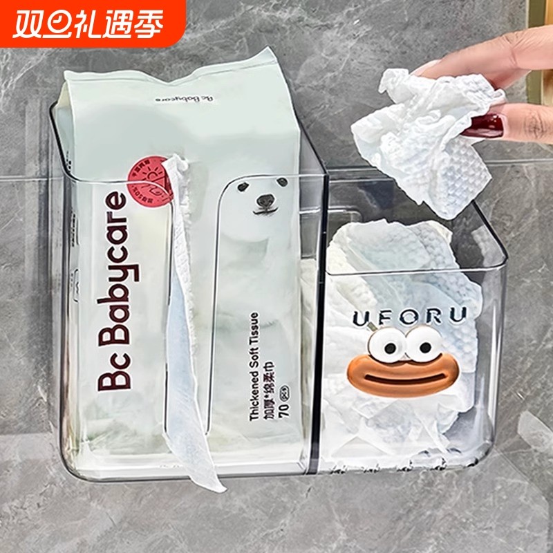 壁挂洗脸巾收纳盒废弃擦脸巾棉柔巾卫生间置物架子二合一洗漱浴室