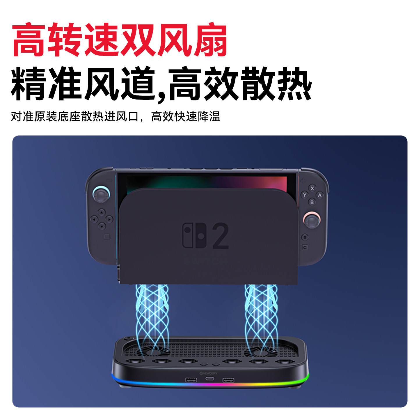 新得利任天堂Switch2散热底座NS2主机散热风扇游戏卡带收纳盒2代降温散热器周边配件