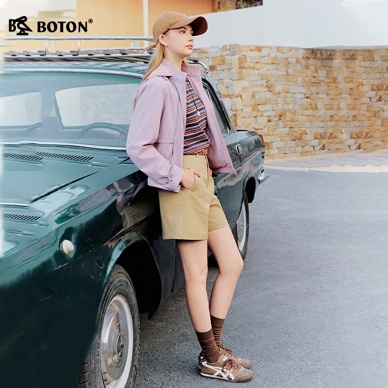 Boton/波顿2026年女装立领甩帽夹克时尚潮流短外套拉链休闲连帽
