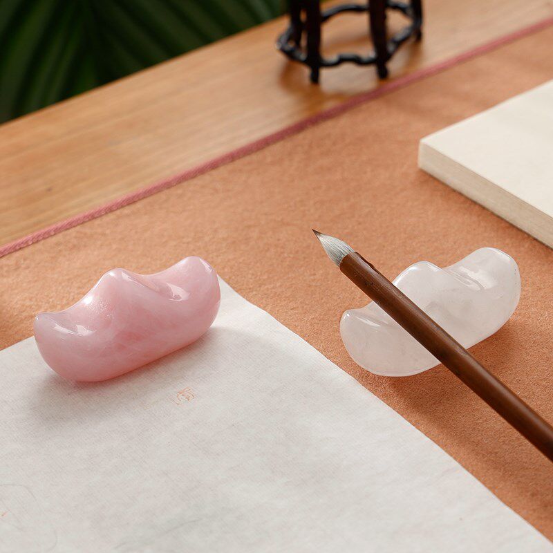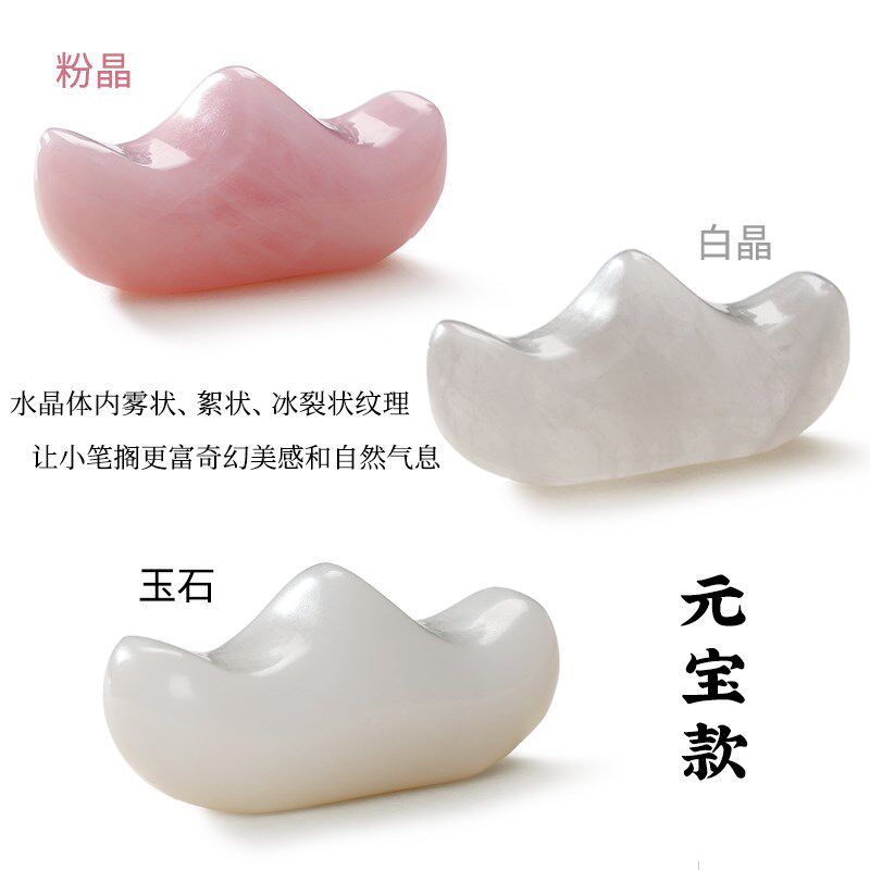 白玉小元宝天然玉石笔搁笔山笔架镇纸镇尺禅书法古