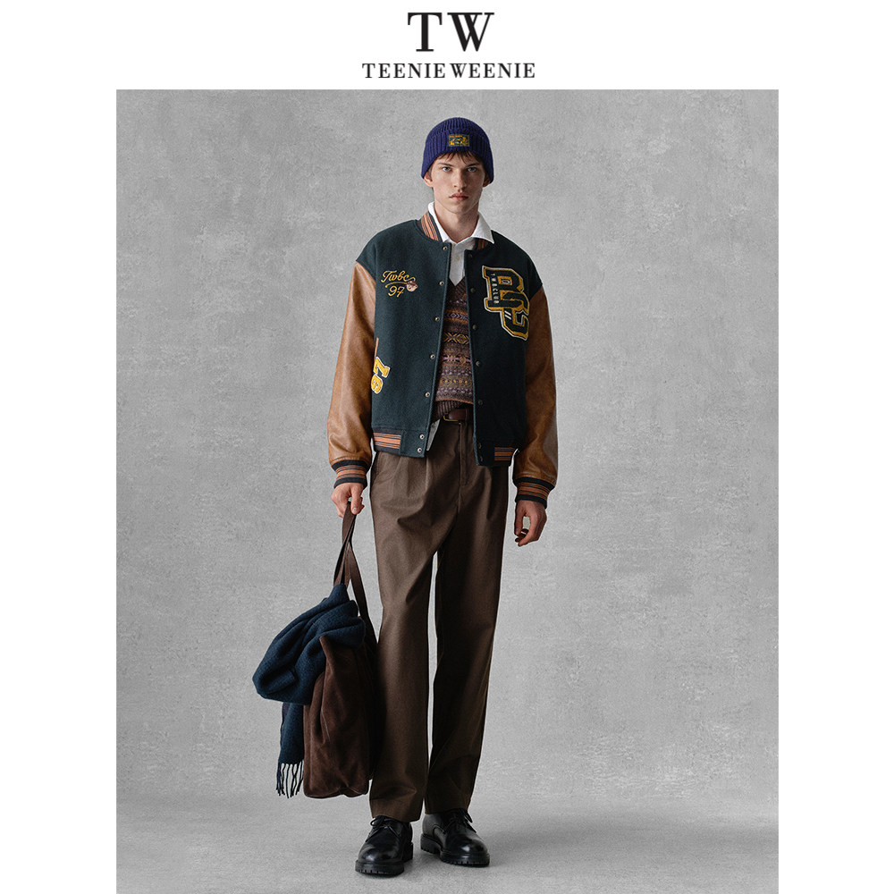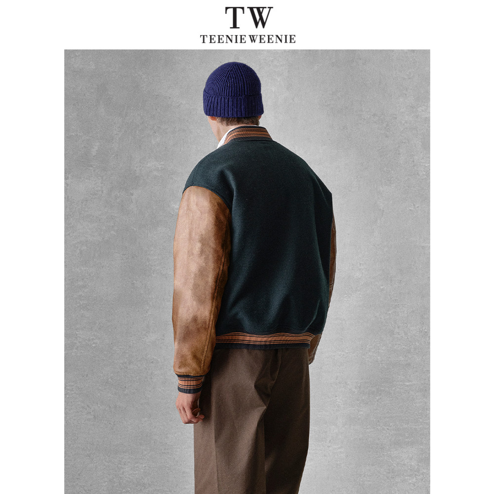 Teenie Weenie小熊男装美式宽松拼接休闲毛呢外套学院休闲棒球服