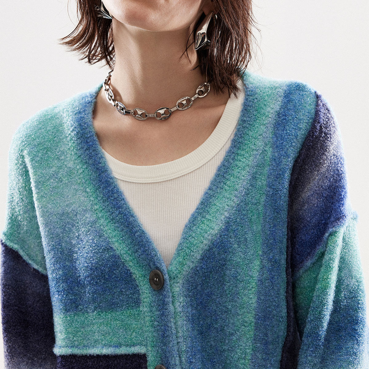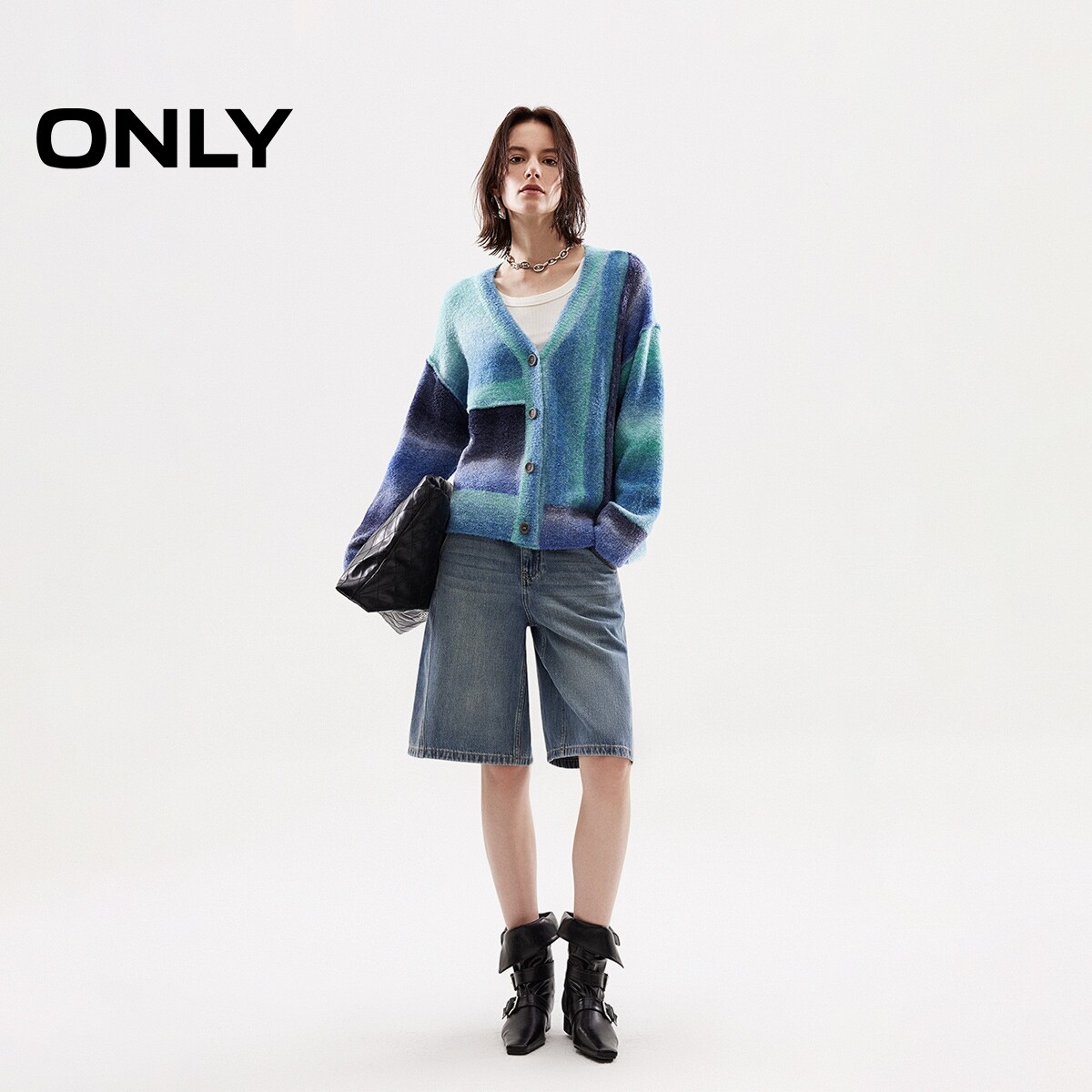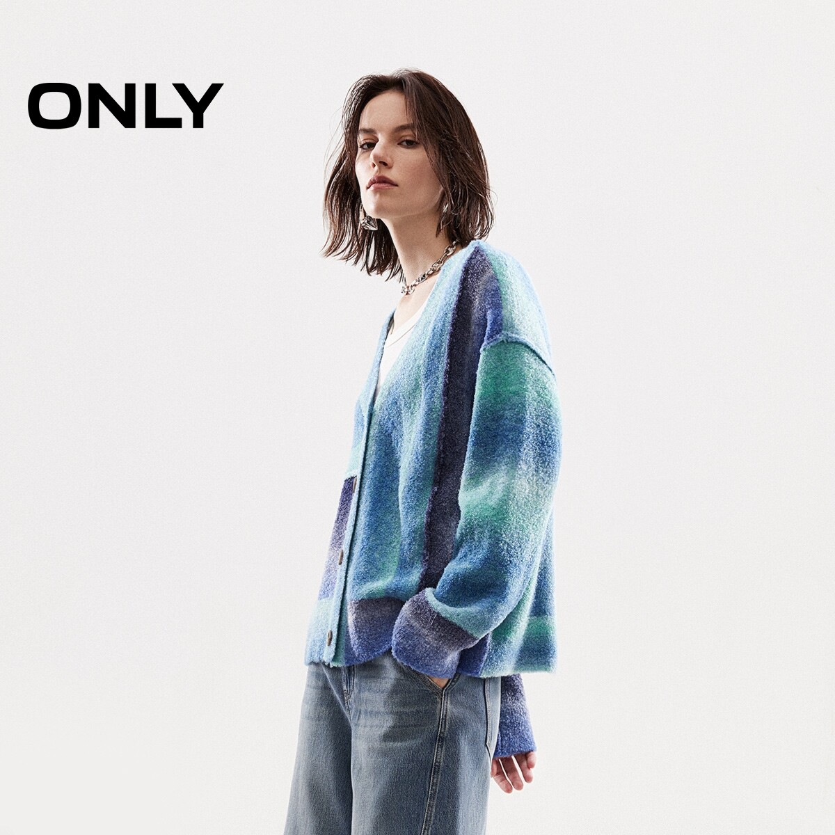 ONLY春季个性拼接马蒂斯配色宽松落肩不规则开衫针织衫上衣女