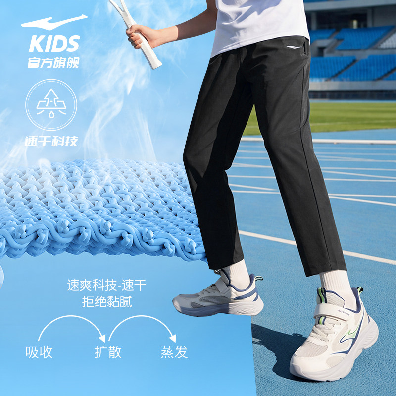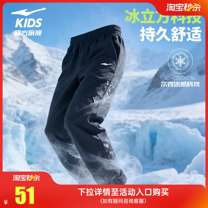 鸿星尔克童装儿童长裤男童运动裤冰感速干夏季中大童直筒休闲裤子
