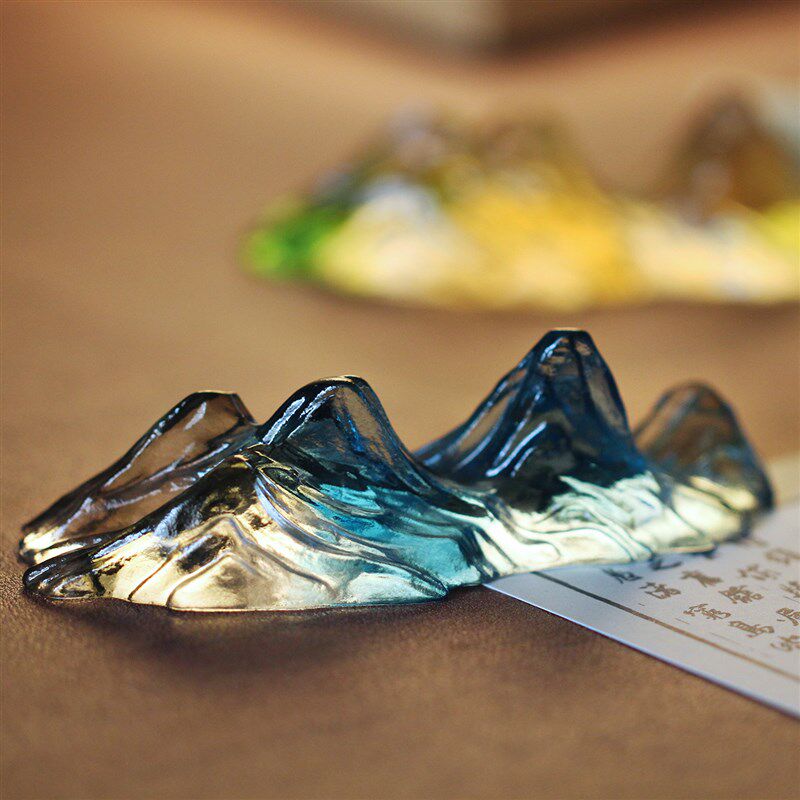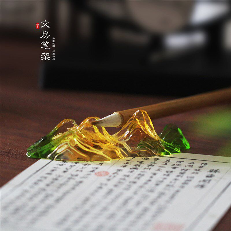 琉璃观山毛笔笔搁假山笔架文房四宝小摆J件山河壮丽新中式镇纸笔